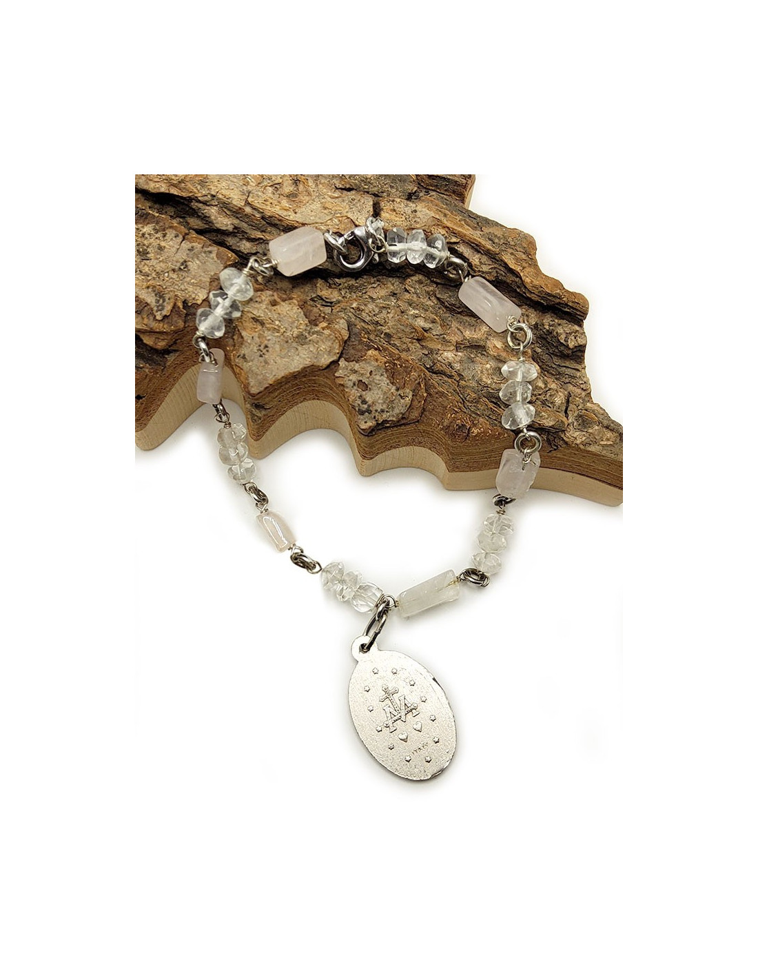 Armband mit Wundertätiger Jungfrau-Medaille - Rosenquarz & Bergkristall