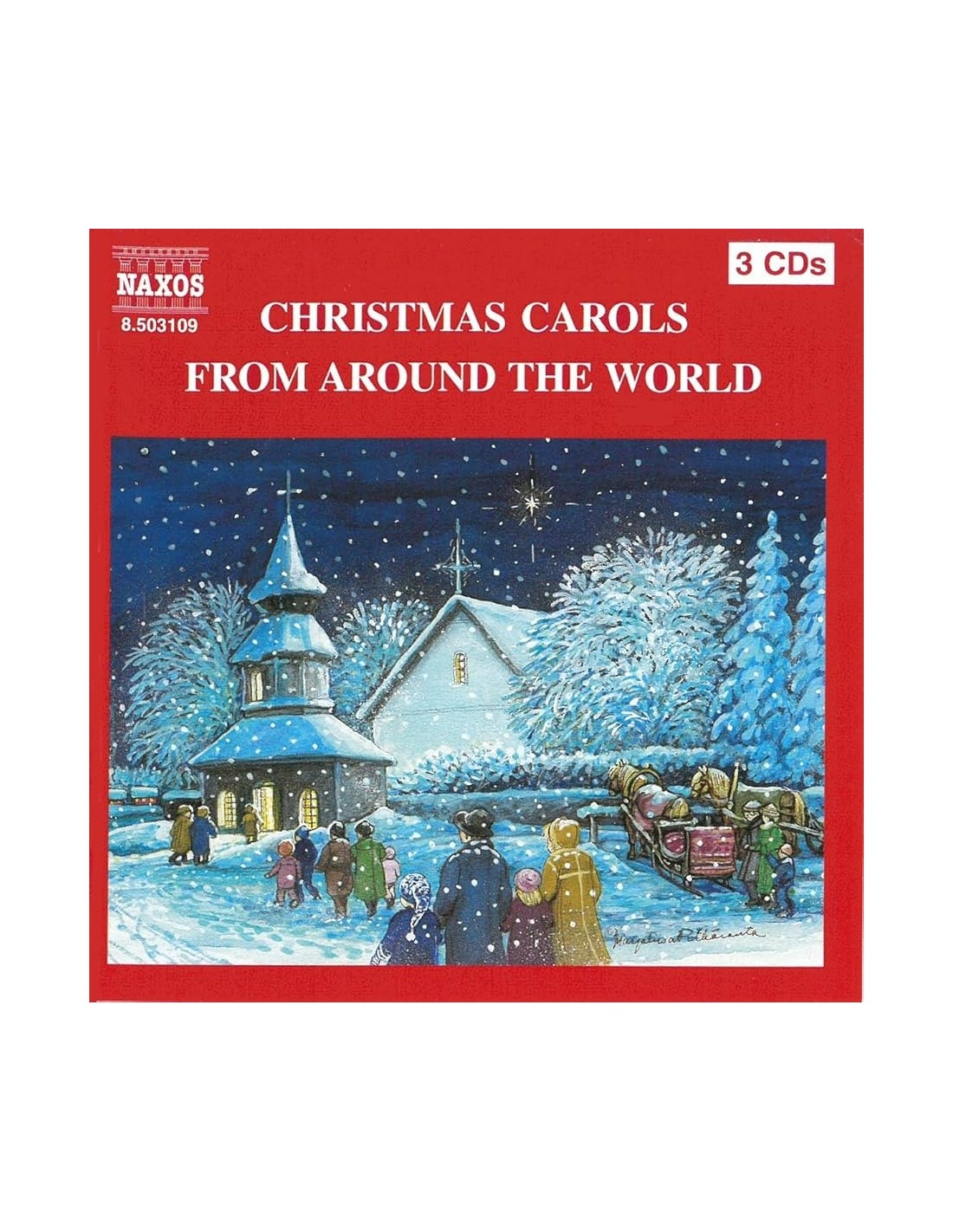 Box mit drei Audio-CDs, Christmas Carols Around the World ist eine Zusammenstellung von Weihnachtsmusik und Weihnachtsliedern aus verschiedenen Orten auf der ganzen Welt: Frankreich, Großbritannien, Vereinigte Staaten von Amerika, Dänemark, Kanada, Finnland... Mehr 3 unvergessliche Stunden für einen einzigartiges Weihnachten.