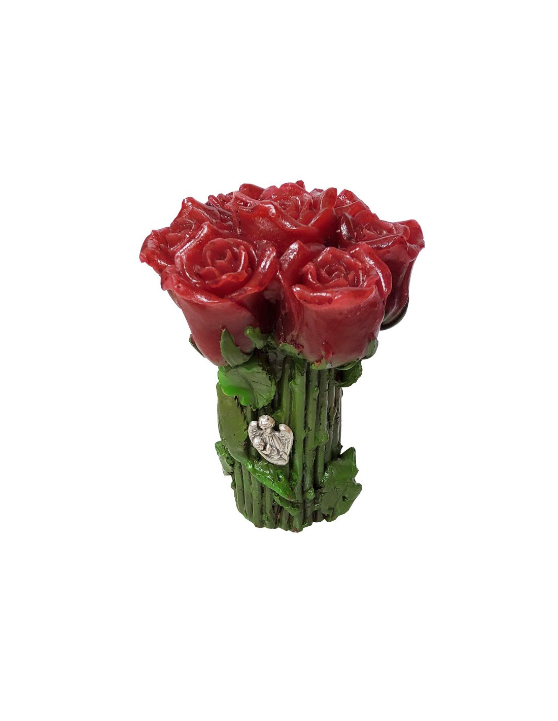 Diese Kerze mit ihrer einzigartigen Form eignet sich perfekt für eine originelle Dekoration! In Form eines Straußes roter Rosen geschnitten und bemalt, eignet es sich hervorragend, um Ihrem Interieur eine romantische, natürliche oder elegante Note zu verleihen.