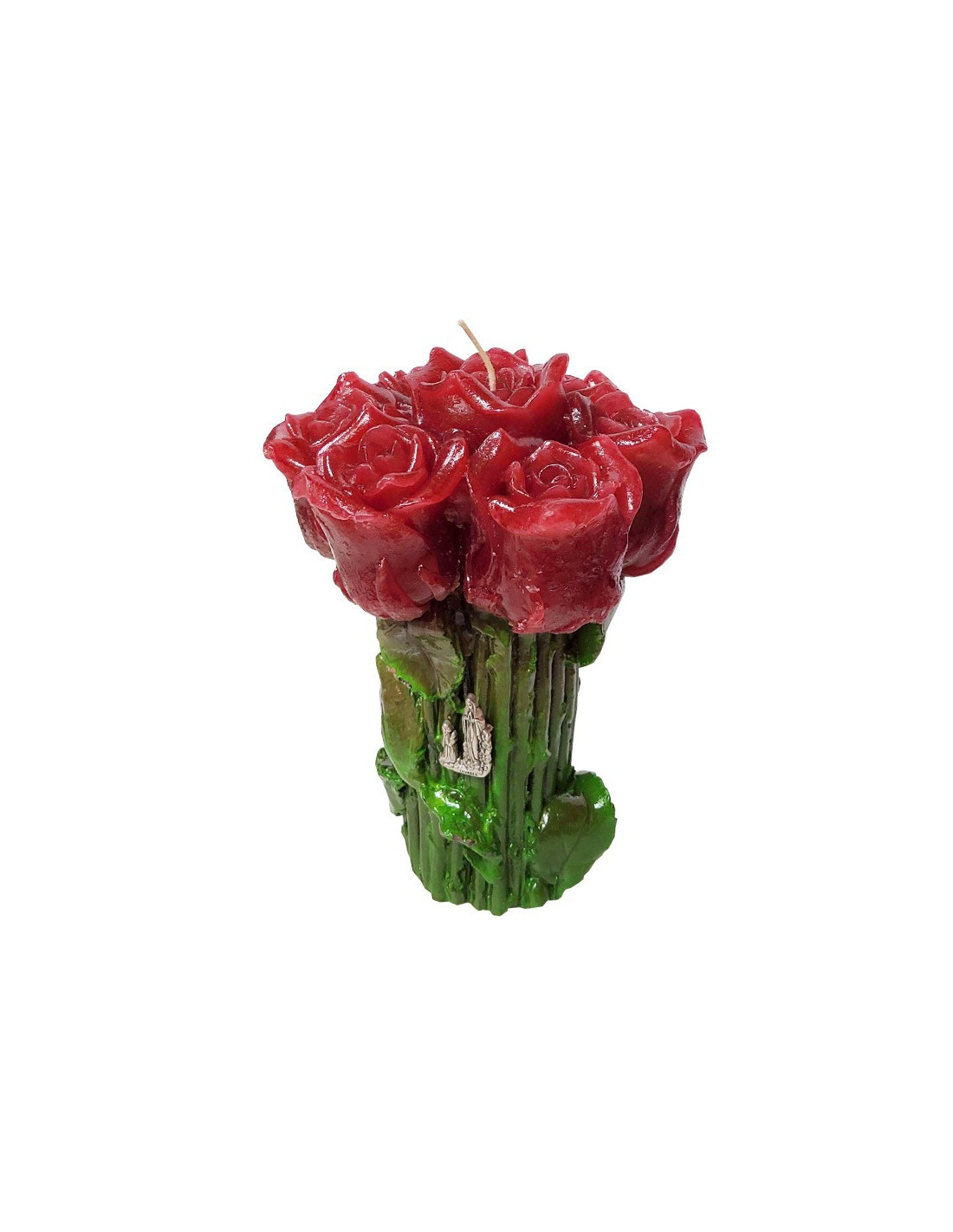 Diese Kerze mit ihrer einzigartigen Form eignet sich perfekt für eine originelle Dekoration! In Form eines Straußes roter Rosen geschnitten und bemalt, eignet es sich hervorragend, um Ihrem Interieur eine romantische, natürliche oder elegante Note zu verleihen.