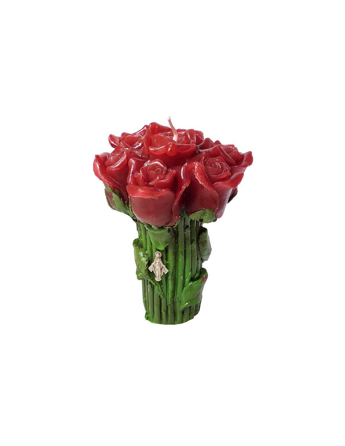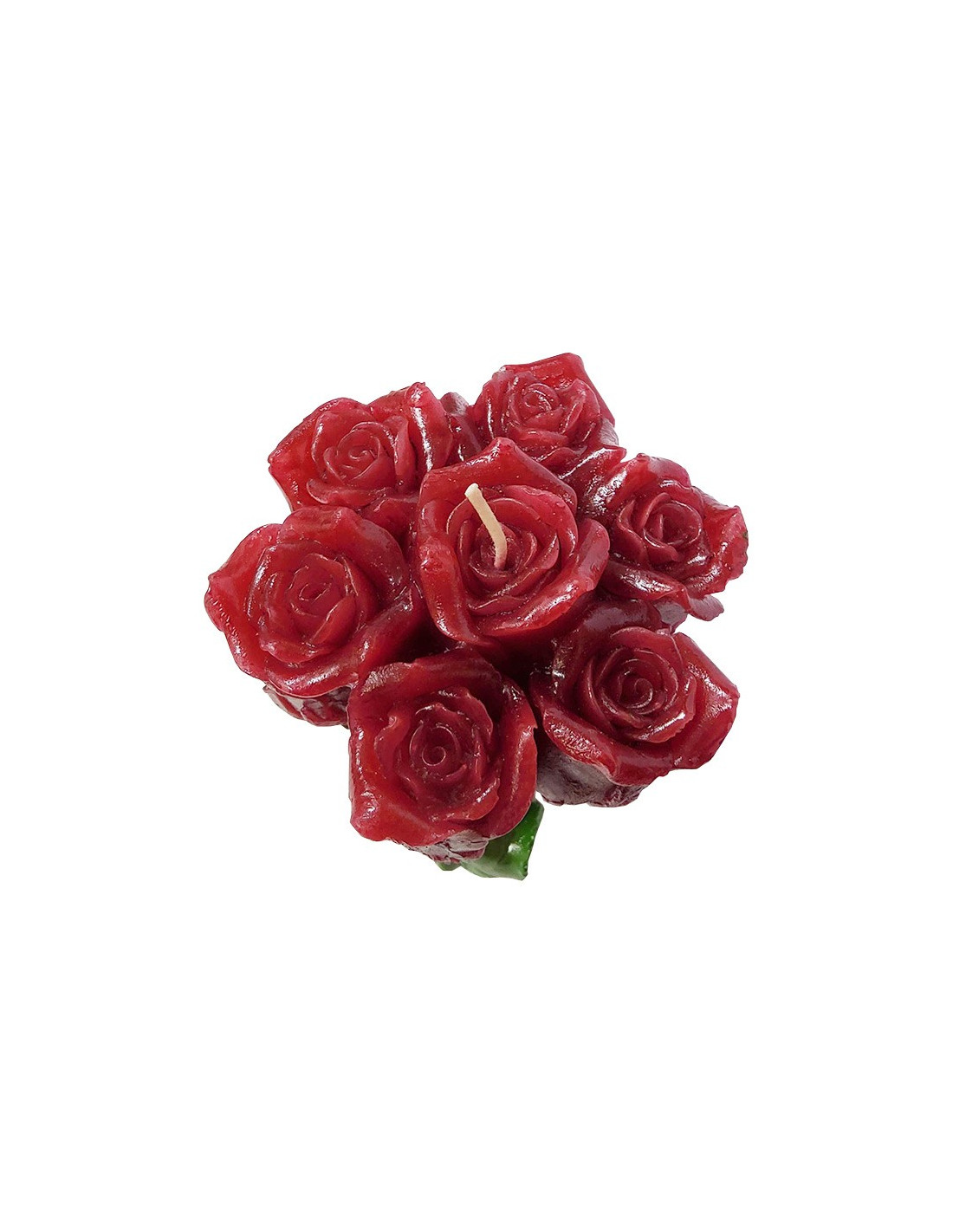 Diese Kerze mit ihrer besonderen Form ist perfekt für eine originelle Dekoration! Geschnitten und bemalt in Form eines Straußes roter Rosen, ist sie exquisit, um Ihrem Zuhause einen romantischen, natürlichen oder eleganten Touch zu verleihen.