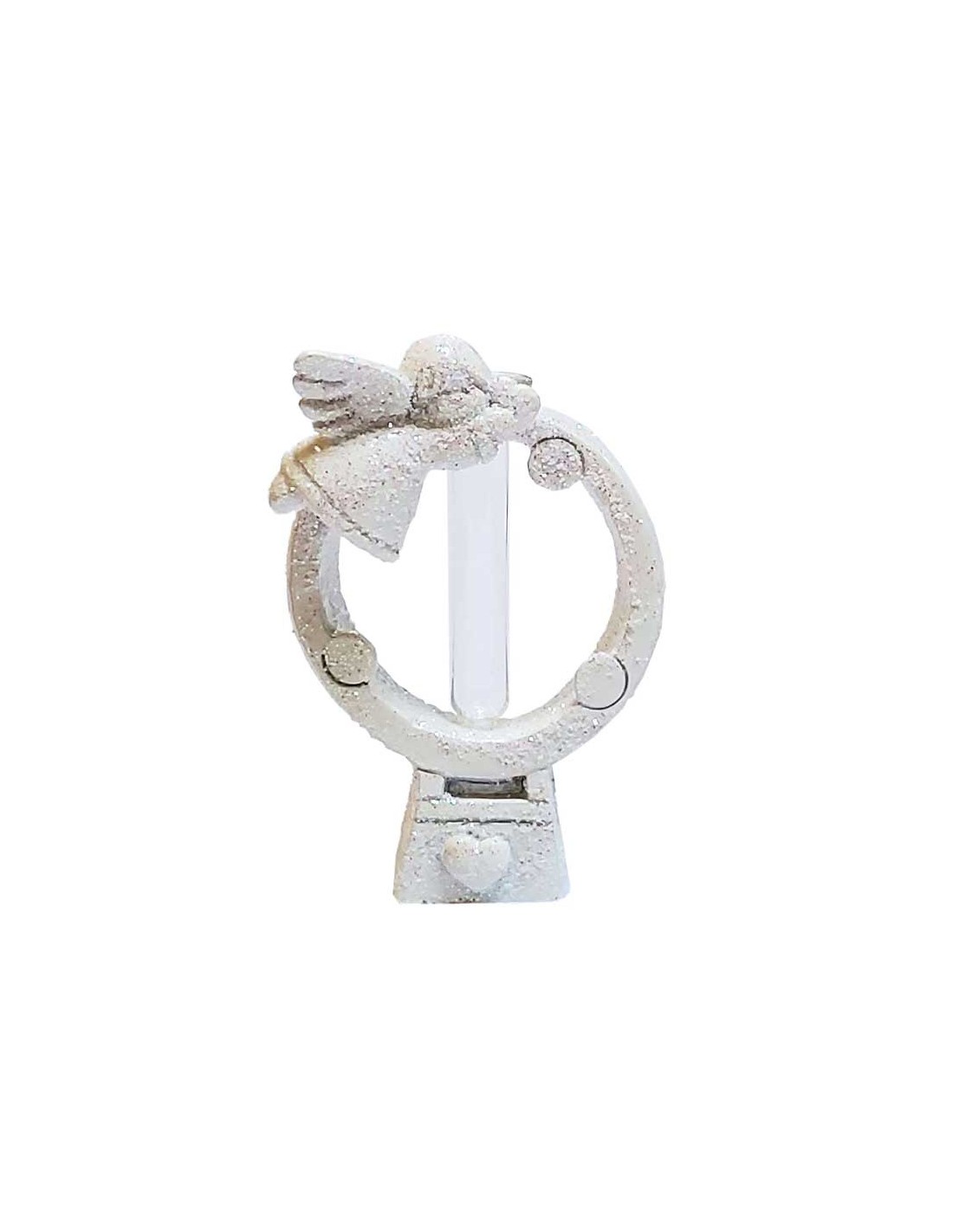Er ist kreisförmig und wird von einem fliegenden Engel gekrönt, der mit dekorativen Pailletten bestreut ist. Die Glasphiole ist für die Aufnahme des Parfüms oder der ätherischen Öle sowie der Stäbchen, die den Duft verbreiten, vorgesehen.