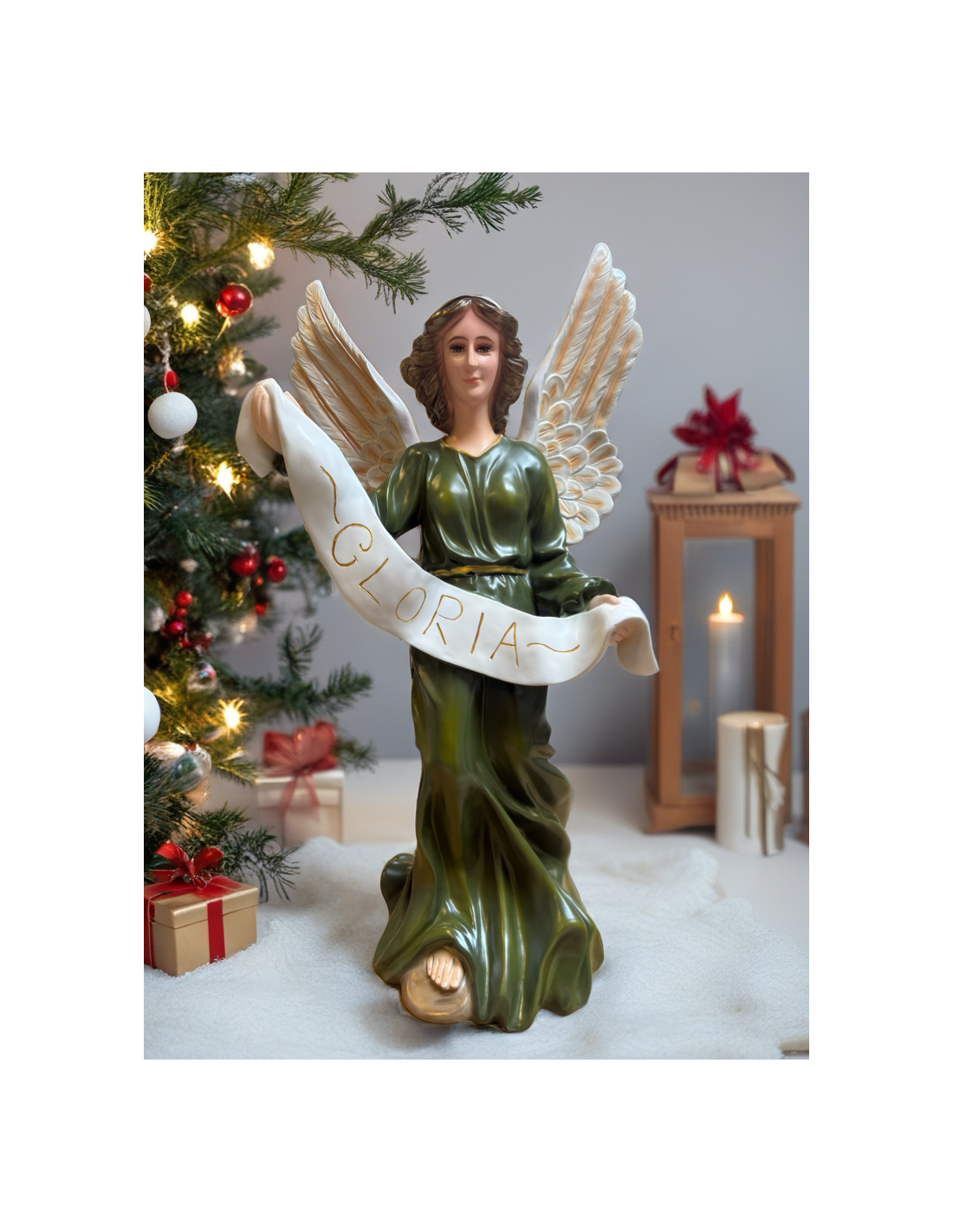 Verschönern Sie Ihre Krippe oder Ihren Gebetsort mit dieser prächtigen Statue des Engels Gloria im grünen Kleid.