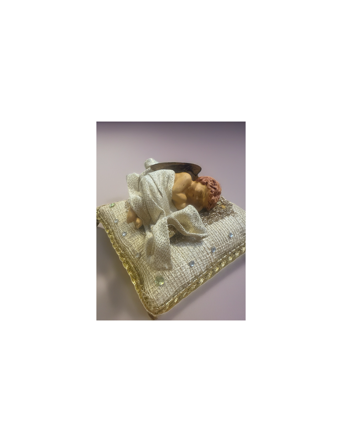 Gelbes Kissen mit schlafendem Engel aus Terrakotta