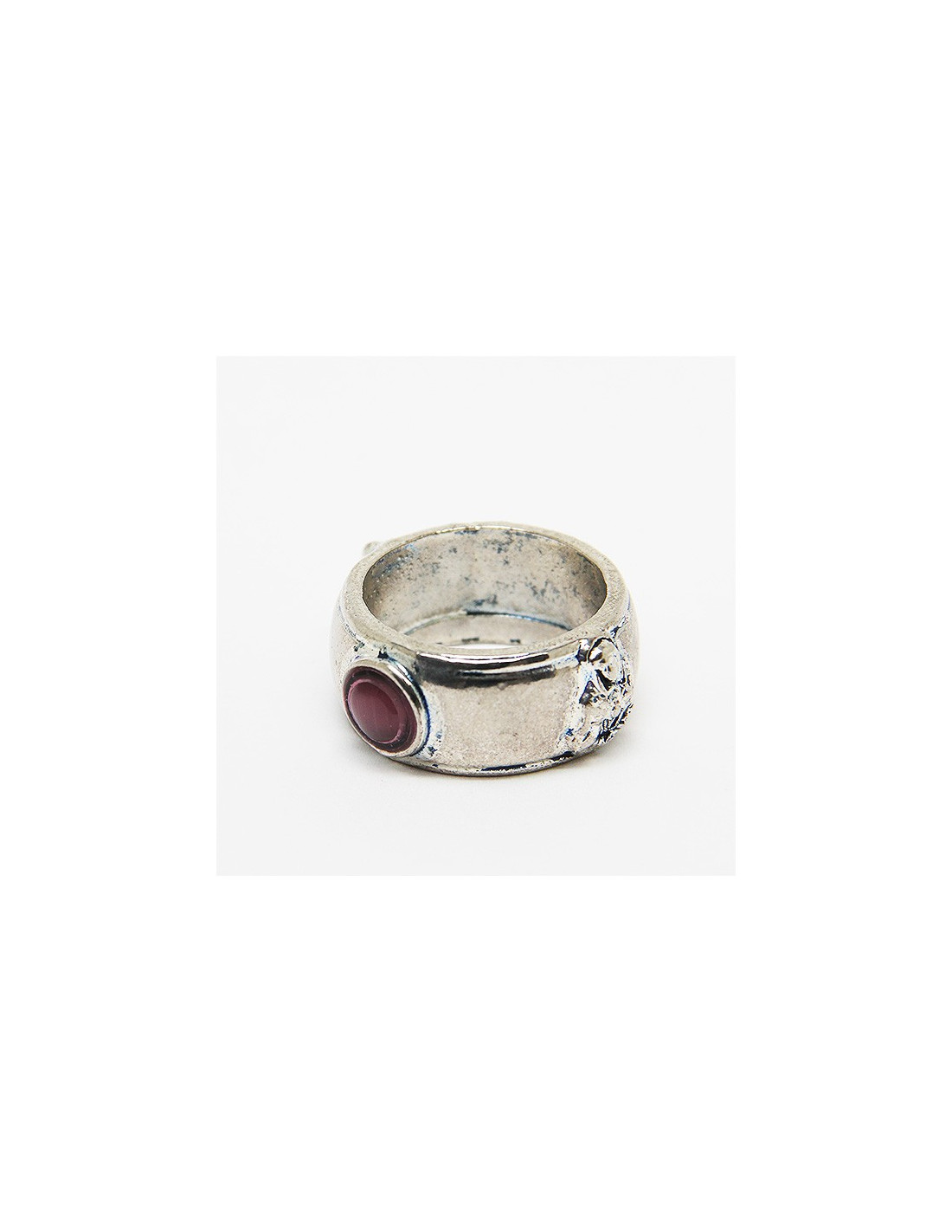 Dieser Ring aus massivem Silbermetall zeigt das Heiligste Herz Jesu und die Muttergottes der sieben Schmerzen. Das Heiligste Herz Jesu ist ein Symbol für große Güte und Unsere Liebe Frau von den sieben Schmerzen für Mitgefühl und Selbstlosigkeit. Auf beiden Seiten des Rings sind zusätzlich zu den Figuren farbige Glasperlen angebracht.