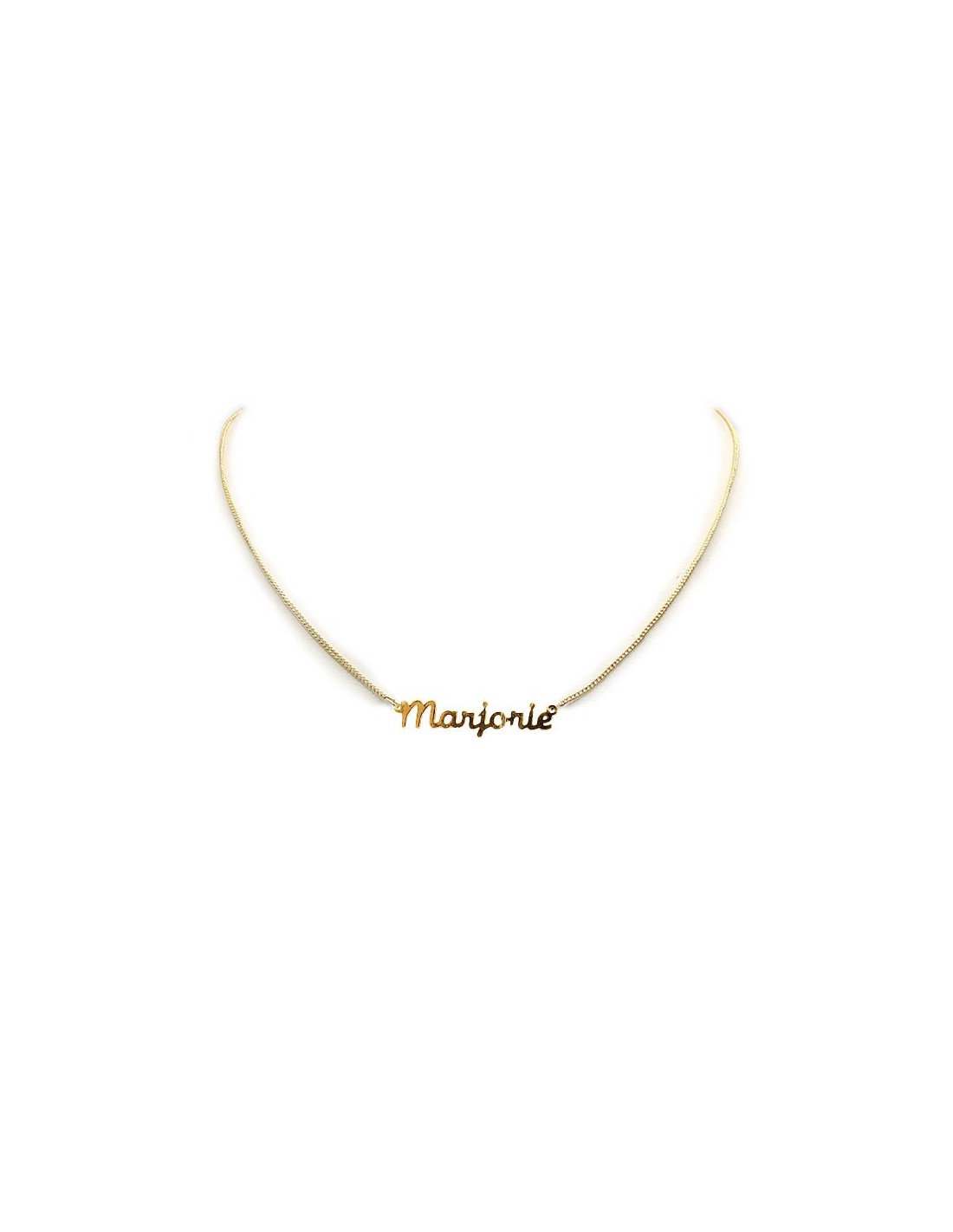 Präsentieren Sie Ihren Vornamen oder den eines geliebten Menschen mit dieser goldenen Halskette. Der Name „Marjorie“ in feinen Buchstaben ist mit Feingold auf einer vergoldeten Kette verziert. Als Variante von Marguerite symbolisiert er die seltene Perle: kostbar, diskret und von großer Finesse. Dieses edle Schmuckstück ist eine liebevolle Geschenkidee zum Geburtstag, zu einer Feier oder zu einem besonderen Anlass.
