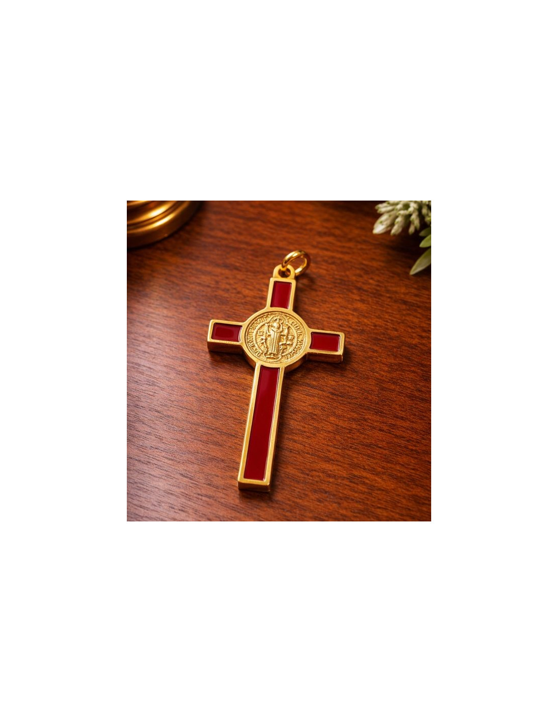 Kreuz des Saint Benoît de Nursie aus vergoldetem Metall mit roter Emaille – 5 cm