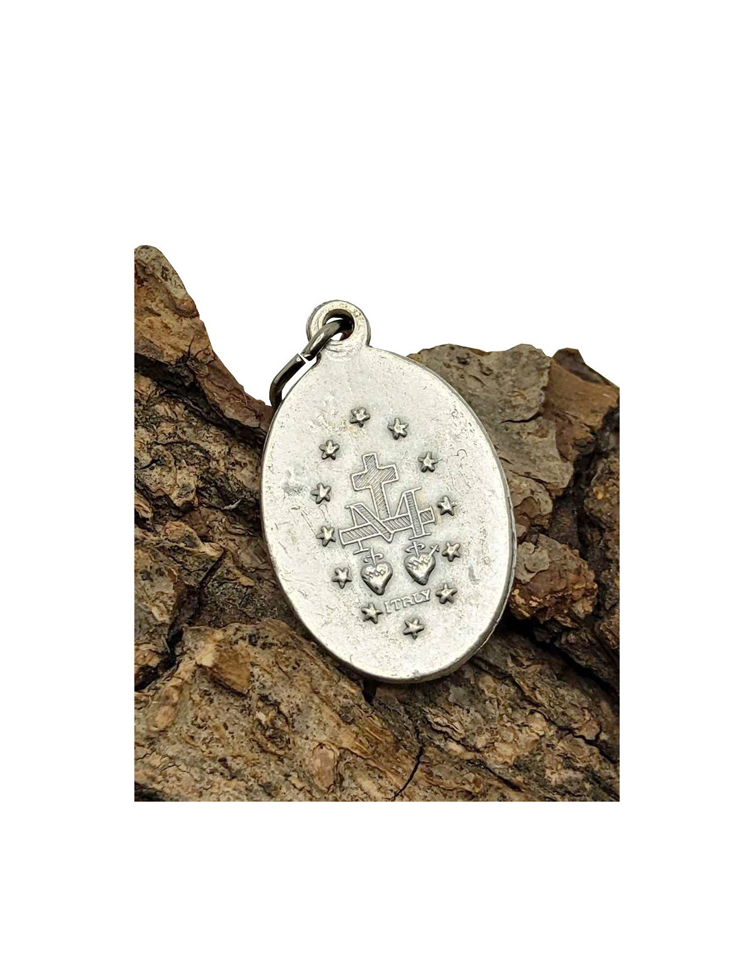 Medaille der Wundertätigen Jungfrau aus silberfarbenem Phantasiemetall. Die Inschriften um sie herum, O Maria ohne Sünde empfangen bete für uns, die wir uns an dich wenden, sind in englischer Sprache. Diese Medaille ist ein Symbol für den Schutz und die mütterliche Liebe der Jungfrau Maria. Sie ist ein schönes Geschenk für einen geliebten Menschen oder für sich selbst, ein diskretes religiöses Schmuckstück.