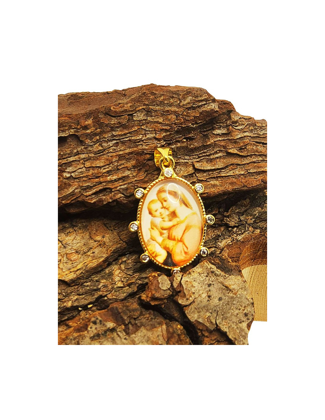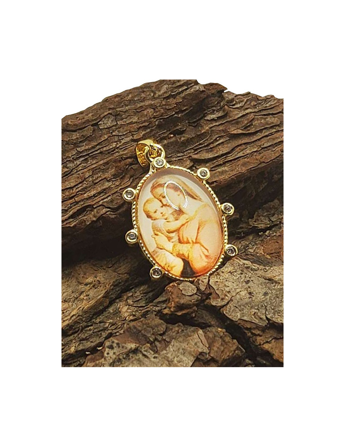 Medaille der Jungfrau mit Kind - Vergoldetes Metall und Strasssteine