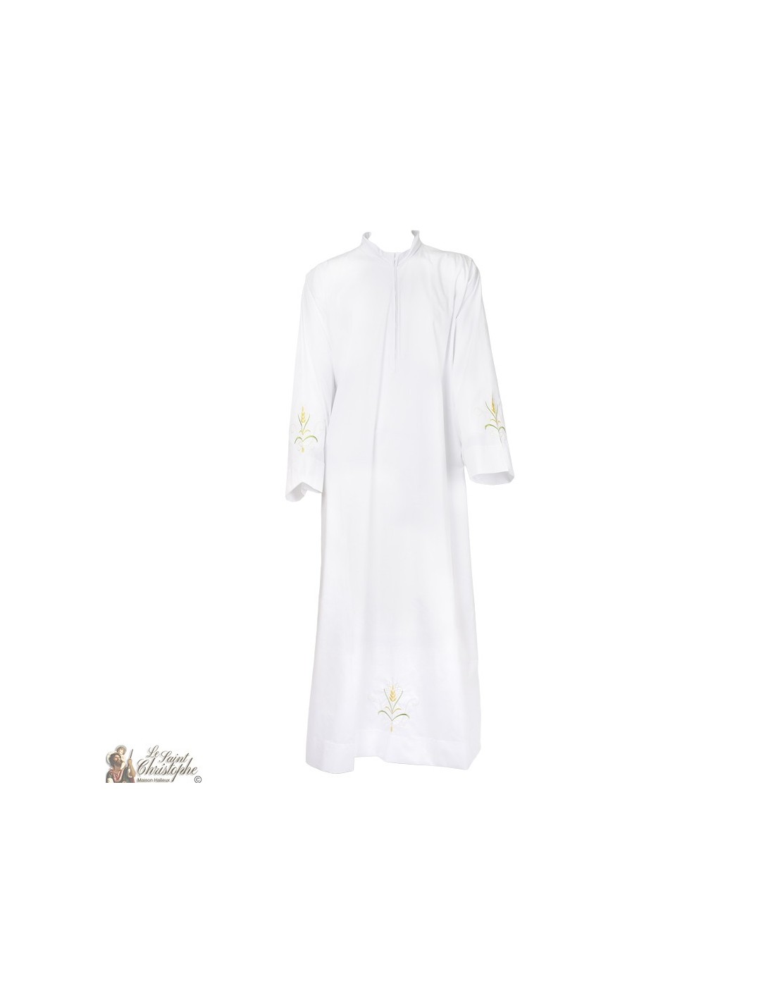 Weiße Alb bestickt mit farbiger Weizenohrstickerei - Baumwolle