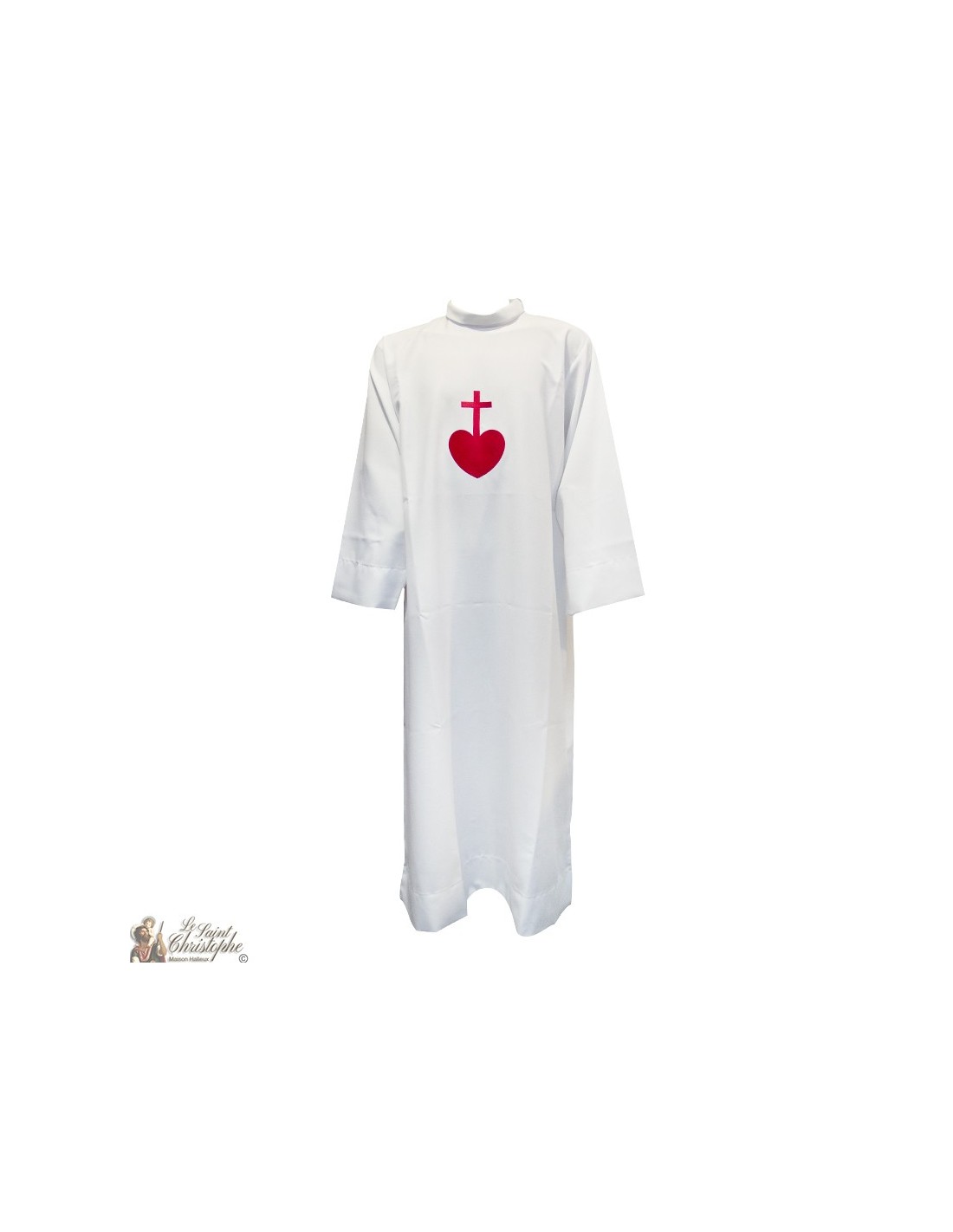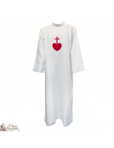 Weißes Alb bestickt rotes Herz bestickt farbiges rotes Herz - Baumwolle