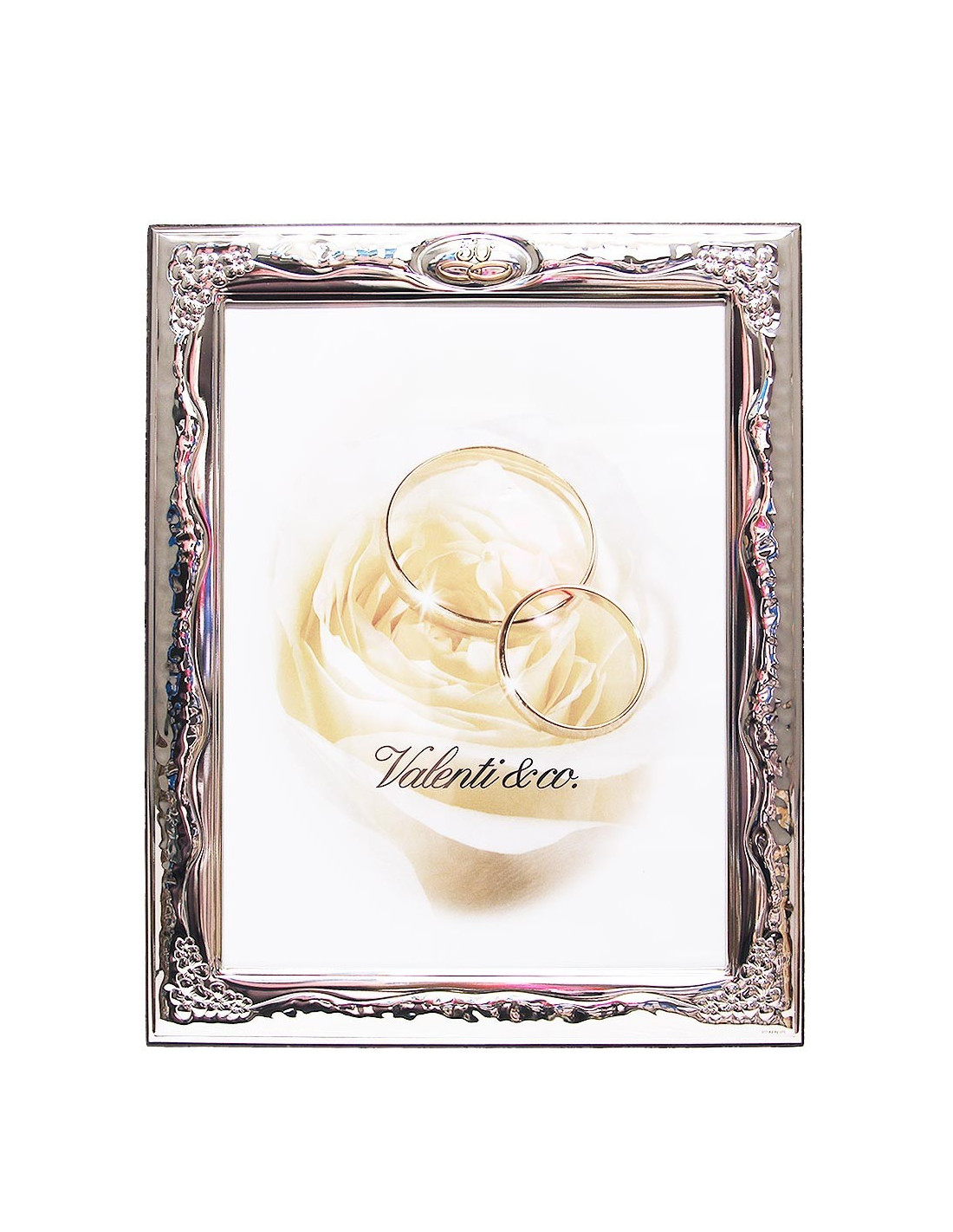 Machen Sie ein außergewöhnliches Geschenk zum 50. Hochzeitstag mit diesem wunderschönen 18x24 cm großen silbernen Fotorahmen von Valenti. Er wurde in Italien von Hand geschnitzt und feiert die Goldene Hochzeit mit Eleganz. Sein raffiniertes Design bringt jeden wertvollen Schnappschuss zur Geltung und ist eine Hommage an ein halbes Jahrhundert der Liebe und Treue. Eine perfekte Wahl, um diesen einzigartigen Abschnitt des Ehelebens mit Geschmack und Tradition zu würdigen.