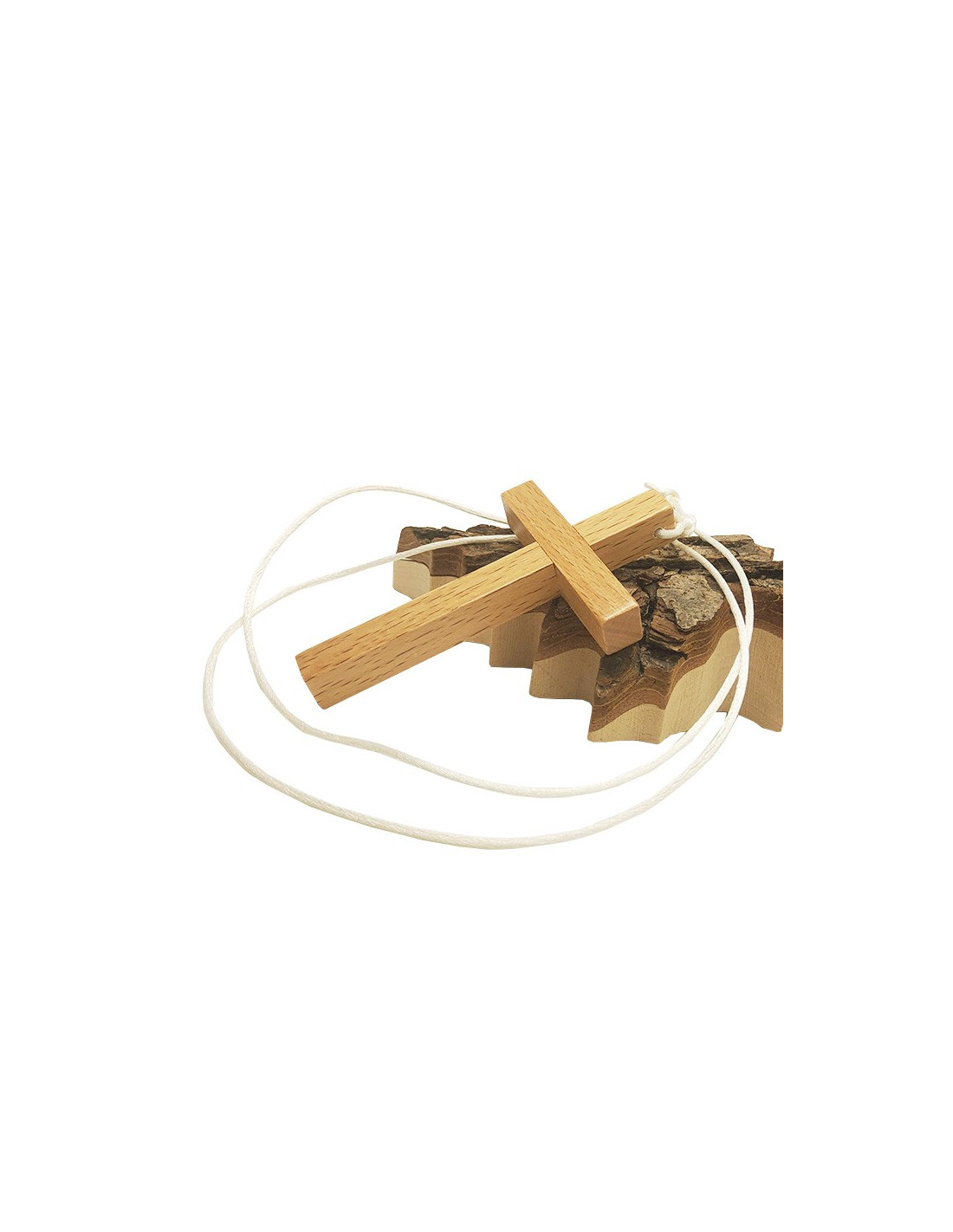 Halskette mit weißer Kordel und Holzkreuz als Anhänger. Dieses Accessoire ist für junge Kommunikantinnen und Kommunikanten unverzichtbar und hinterlässt ihnen eine Erinnerung an dieses unvergessliche Ereignis in ihrem geistigen Leben.