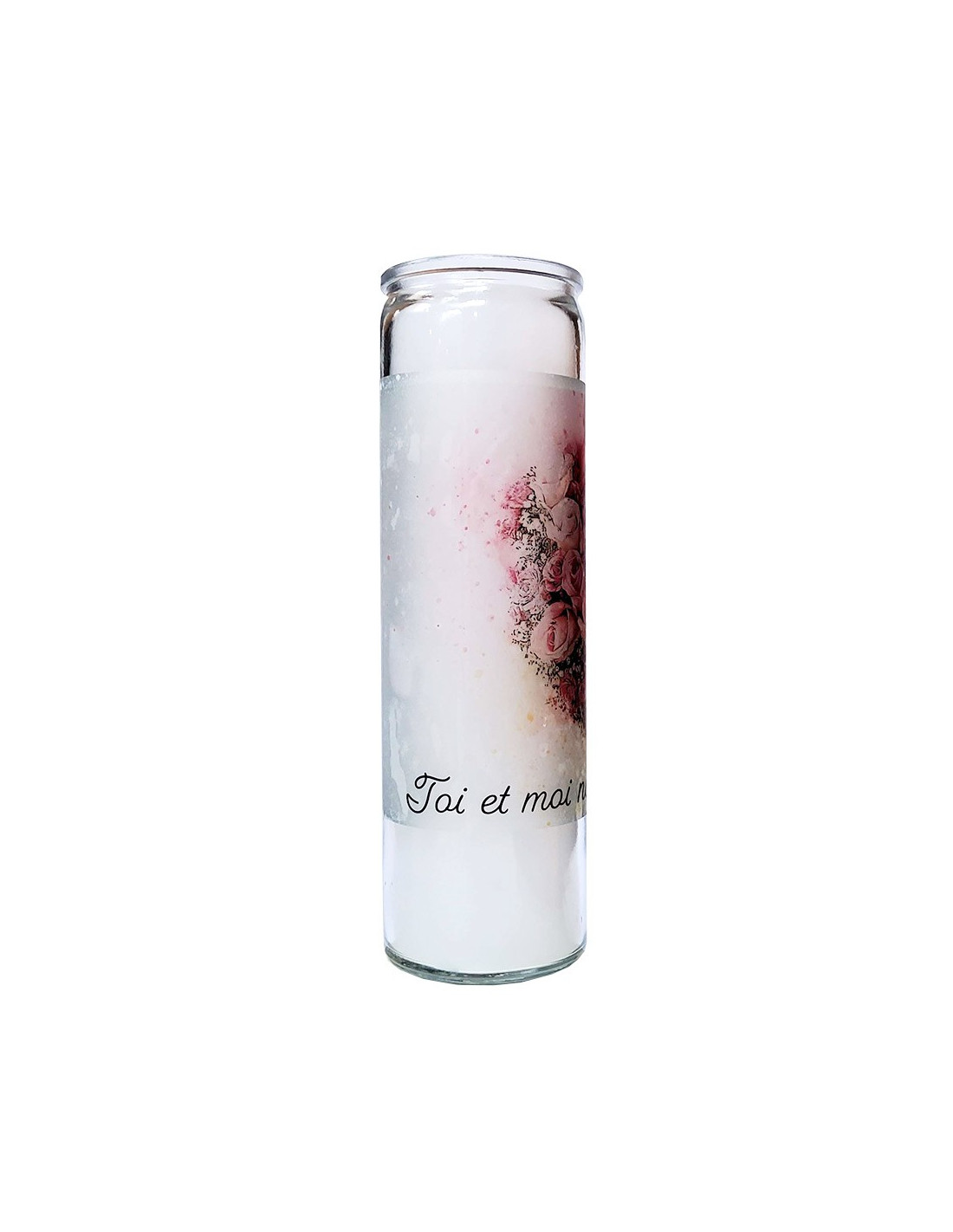 Mit dem Bild eines Blumenstraußes und einem romantischen Zitat ist diese Kerze perfekt, um für eine originelle Atmosphäre zu sorgen!