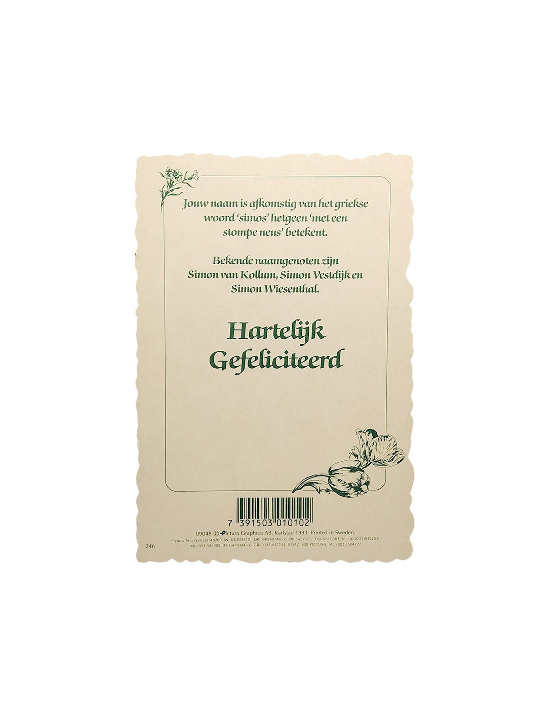 Postkarte mit Vornamen, für Personen mit dem Namen Simon, mit Blumen verziert, mit Bedeutung des Namens und berühmten Persönlichkeiten. Originelle und zarte Geschenkidee.