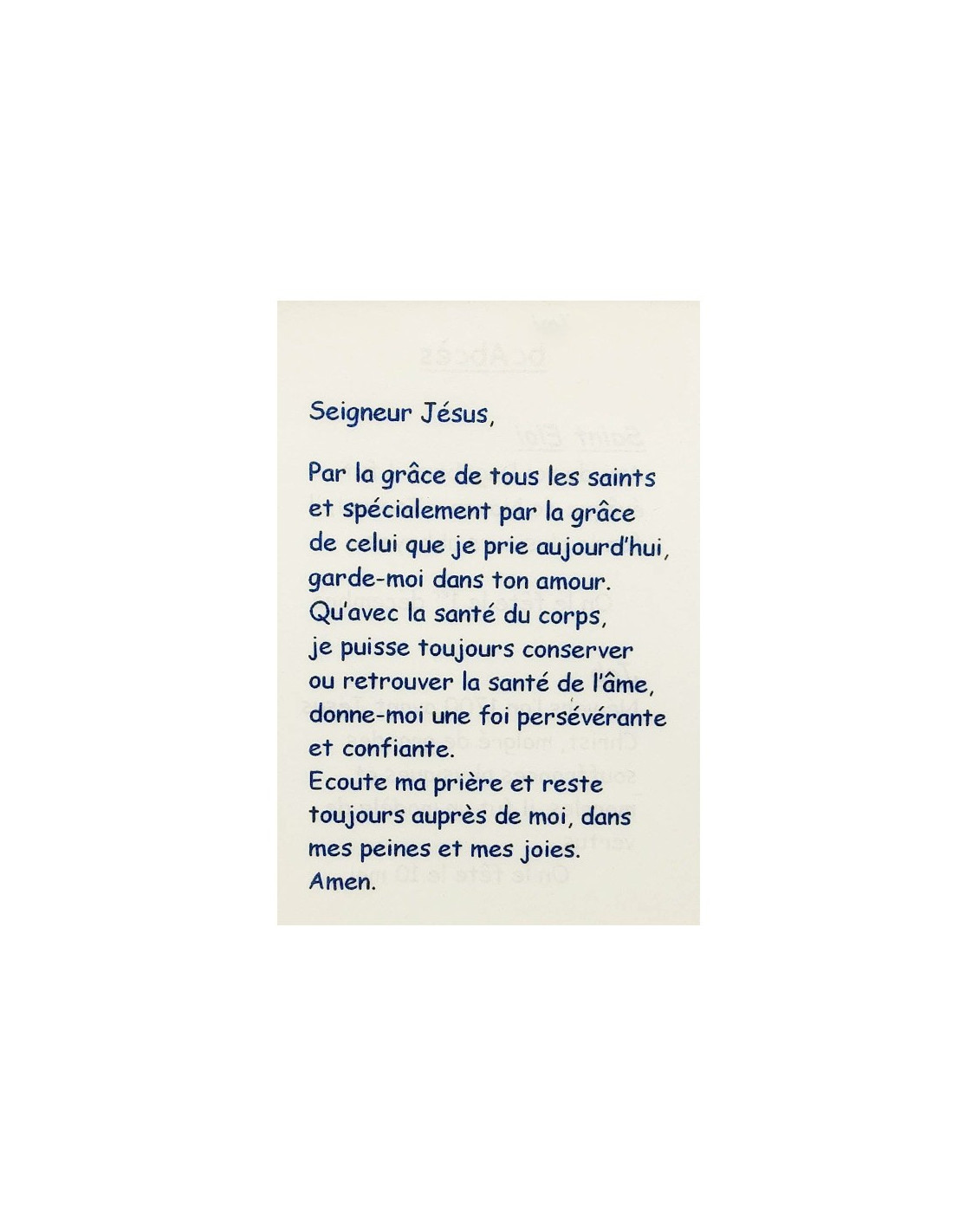 Diese Karte ist ein kleines, diskretes Hilfsmittel, um zu Ihren Schutzpatronen zu beten. Sie ist nützlich für Menschen, die an Abszessen leiden, und erklärt in wenigen Worten, welche Schutzheiligen helfen, diese zu lindern oder zu heilen: der Heilige Eligius und der Heilige Hiob. Auf der Rückseite steht ein kurzes Gebet, das Jesus und der Gnade der Schutzheiligen gewidmet ist, um in den Anstrengungen zu trösten, den Glauben zu stärken, Hindernisse zu überwinden und vor den Übeln des Alltags zu schützen.