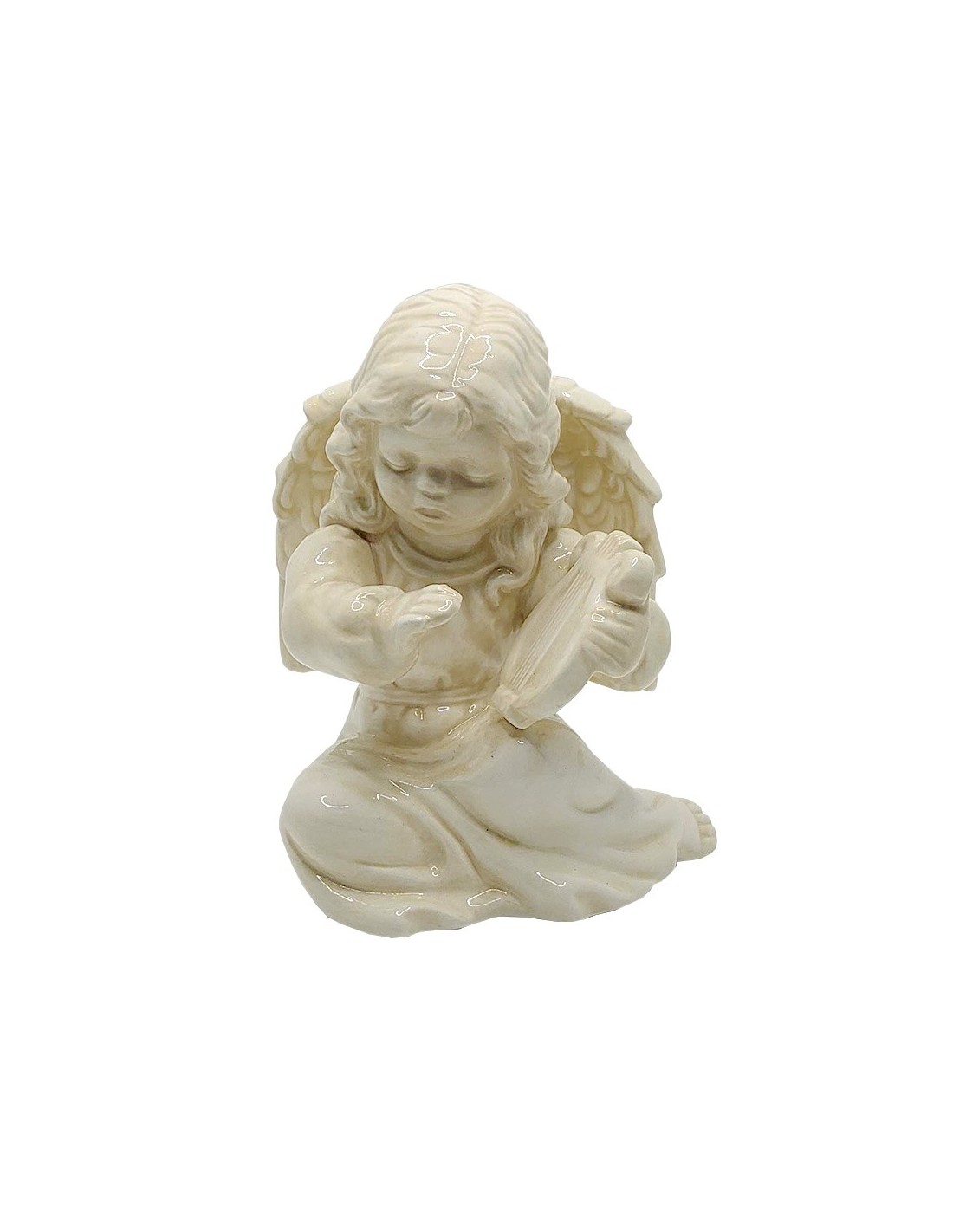 Verleihen Sie Ihrer Inneneinrichtung mit unserem Kerzenhalter aus englischer Keramik, der sorgfältig in Form eines Engels, der die Lyra spielt, gestaltet ist, einen Hauch von Eleganz und Zärtlichkeit. Seine sanfte, cremefarbene Farbe harmoniert perfekt mit allen Einrichtungsstilen und schafft eine warme und einladende Atmosphäre.