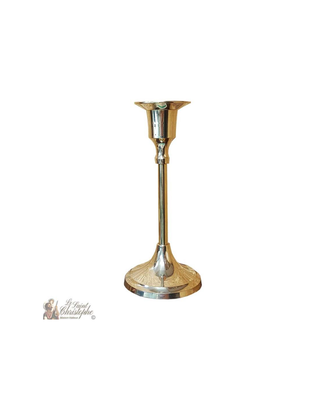Kerzenständer aus vergoldetem Kupfer in schlichter und zeitloser Form, für Kerzen und Tischkerzen. Vollständig handgefertigt. Material: Kupfer. Höhe: 15 cm. Gewicht : 170 gr. Code: 115303