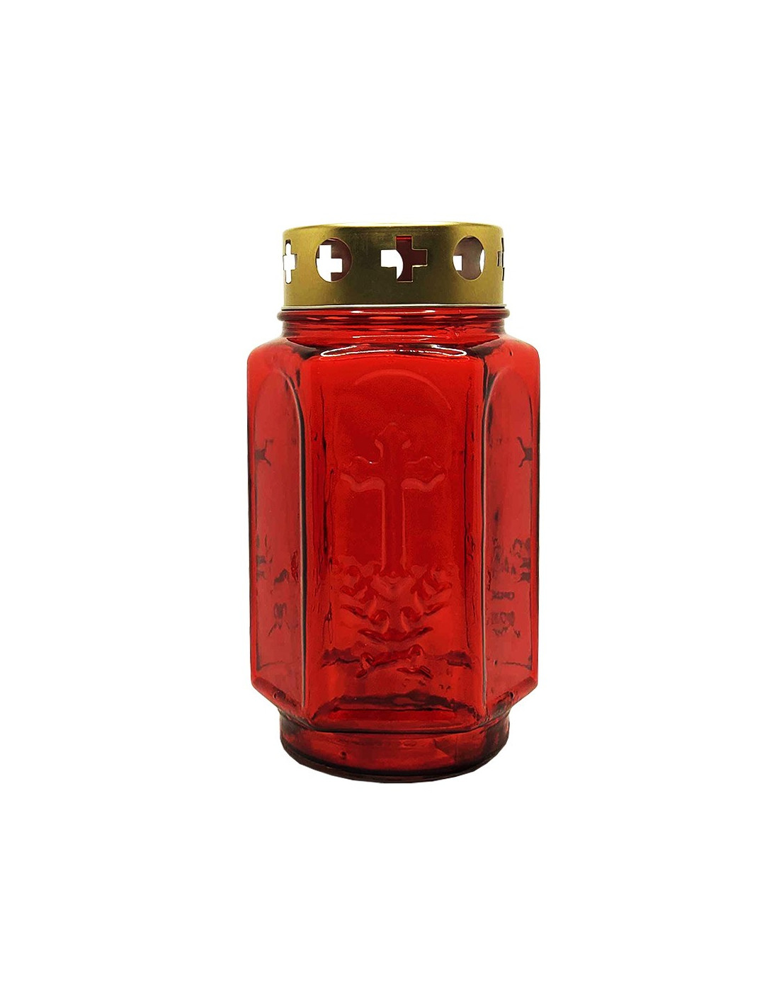 Friedhofslaterne 17 cm aus rotem Glas mit kupferfarbenem Metalldeckel
