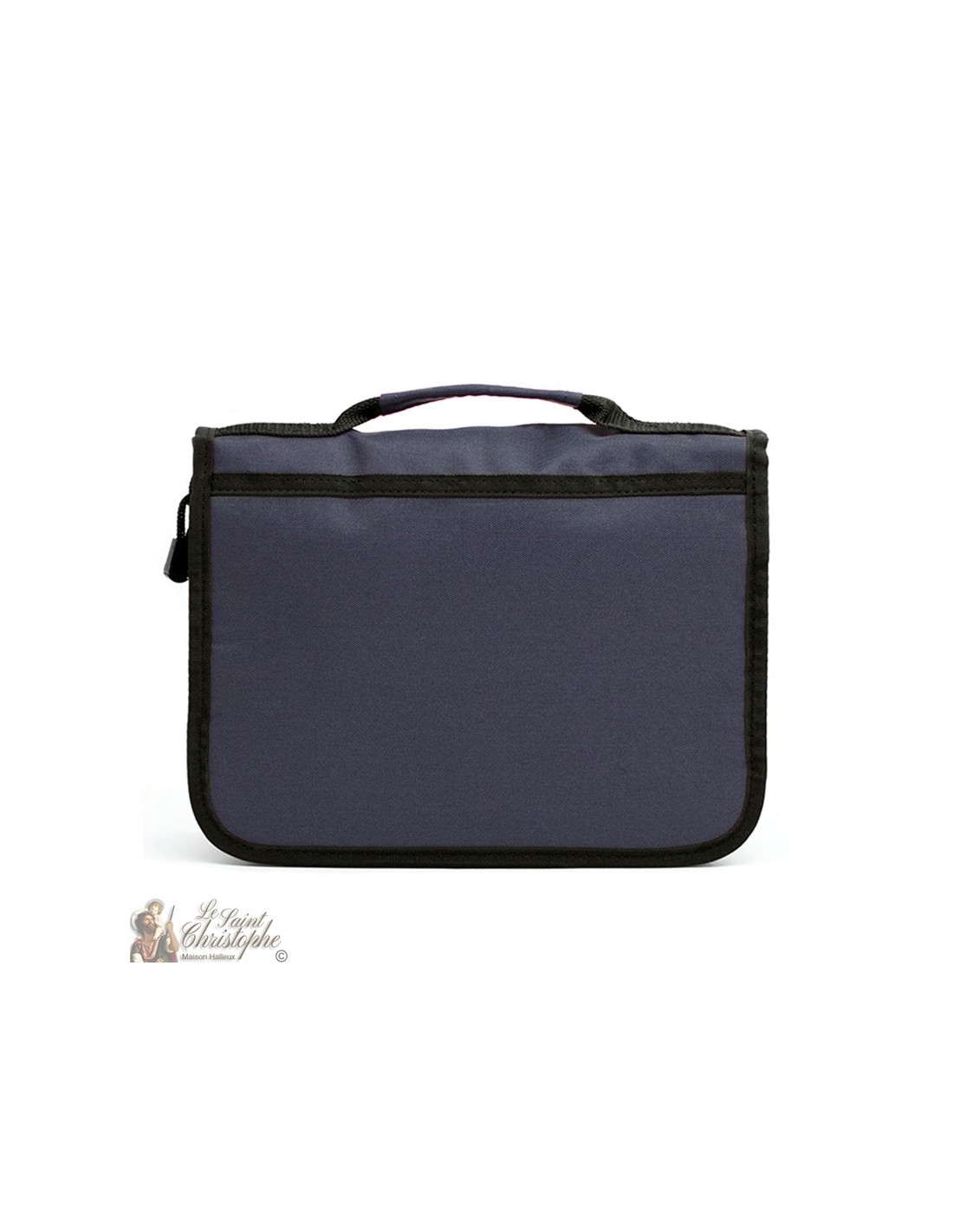 Schwarzer Stoffeinband für Bibel. Diese Tasche ermöglicht es Ihnen, Ihre Bibel auf Reisen vor Flecken und anderen Schäden zu schützen und bietet gleichzeitig praktisches Zubehör.