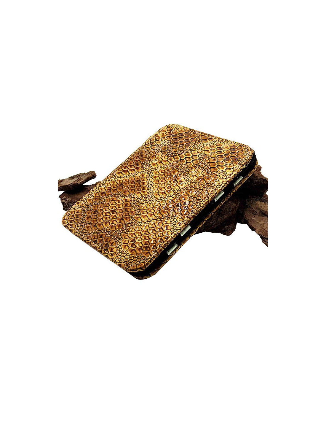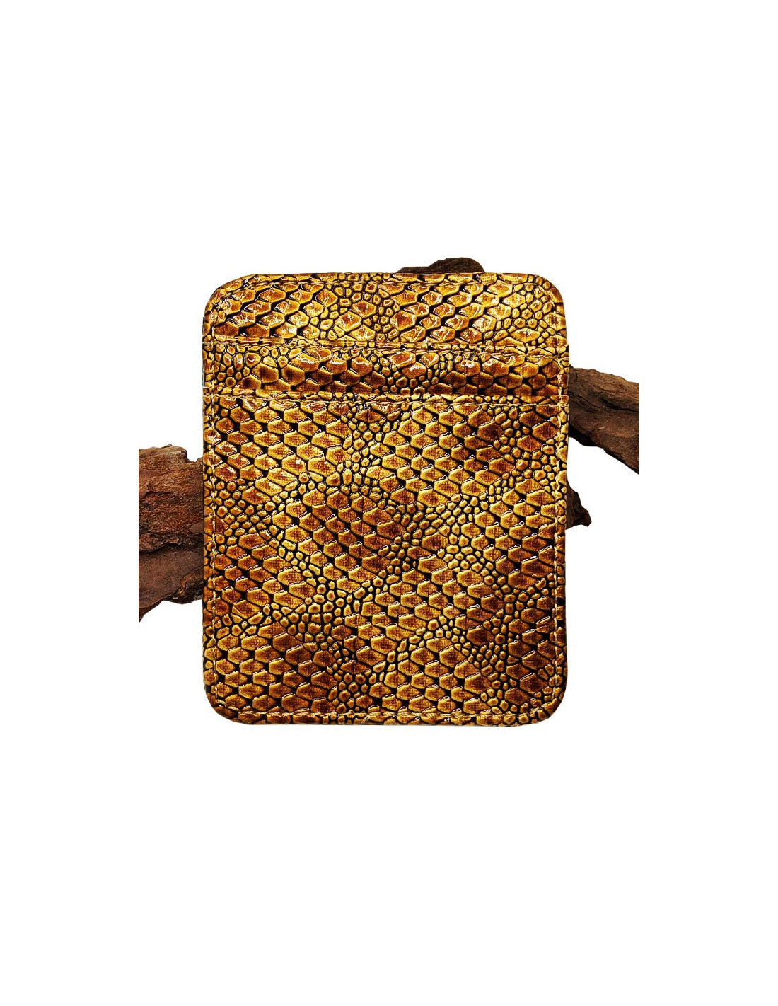 Magischer Karten- und Geldscheinhalter aus goldfarbenem Kunstleder mit Schlangeneffekt