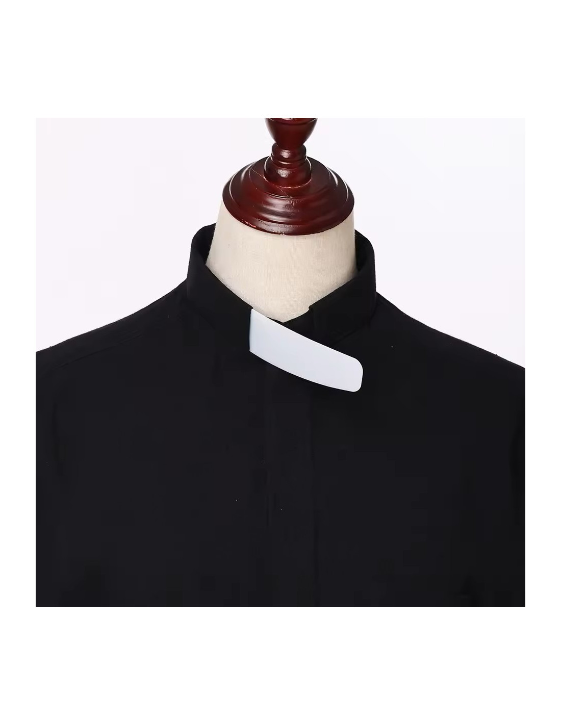 Weißer Klerikerkragen für Hemd – ein steifer Kragen, der in den speziell dafür entworfenen Ausschnitt des Hemdes eingesetzt wird.