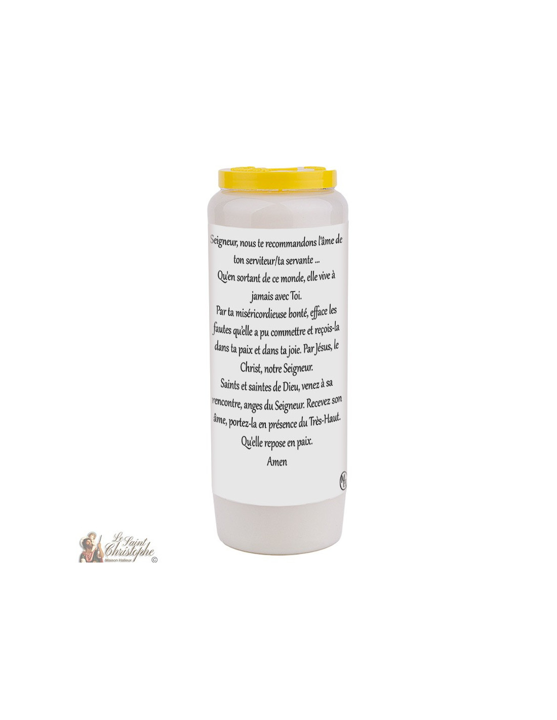 Gemüsenovenkerze mit dem Bild Ihrer Wahl auf der Vorderseite und einem Gebet auf der Rückseite, das einem verstorbenen geliebten Menschen gewidmet ist.