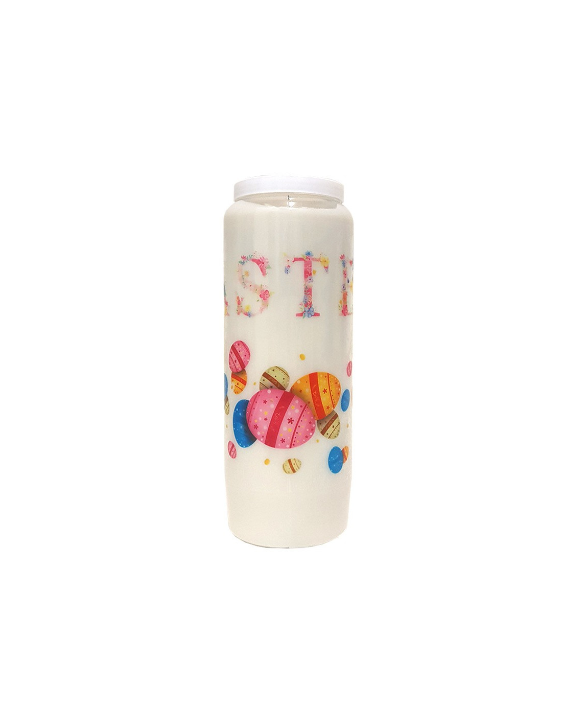 Neuvaine-Kerze aus Pflanzenöl mit einer schönen Illustration für die Ostertage.