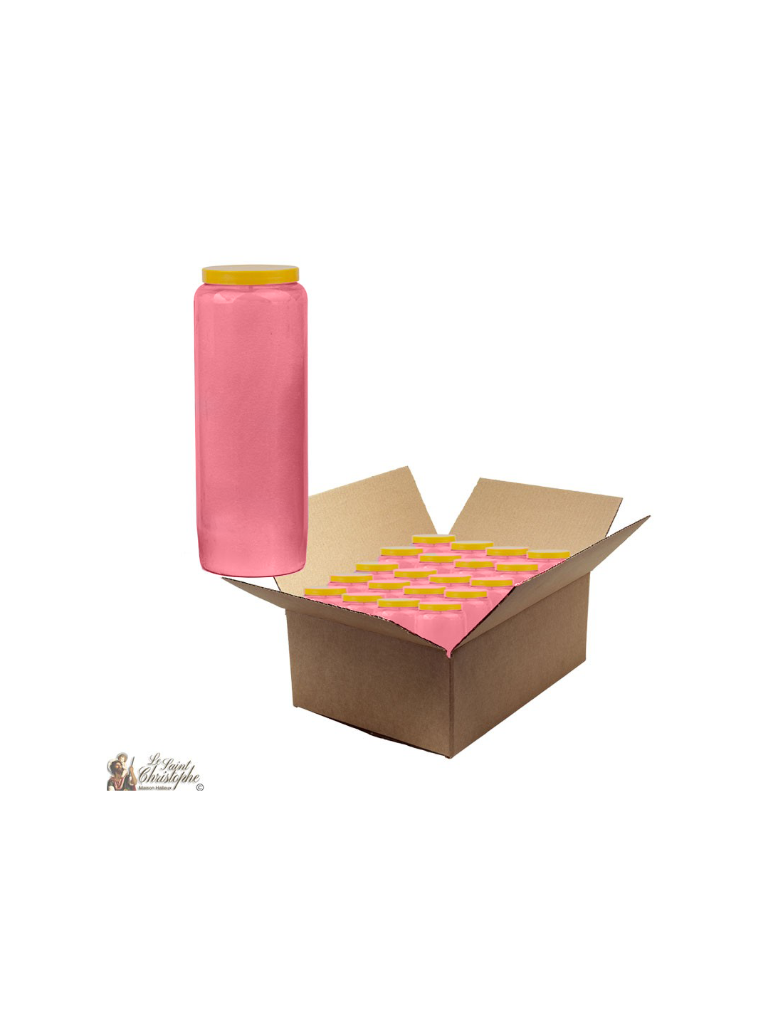 Rosa Novenkerze. Eine Schachtel enthält 20 Kerzen.