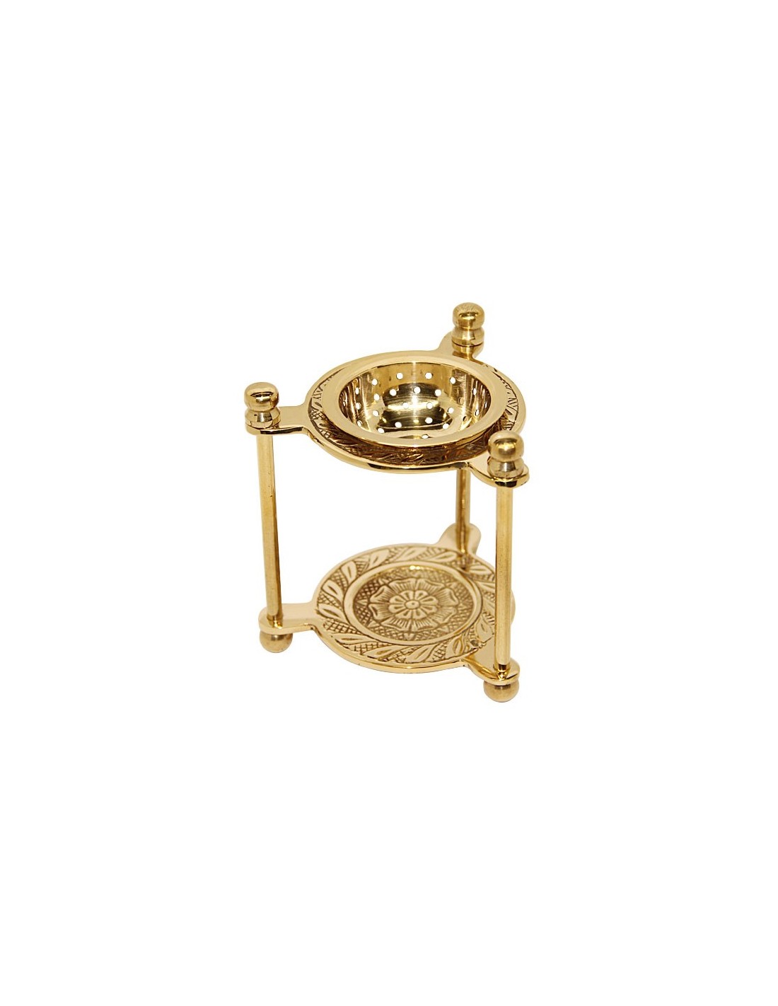 Dieses kleine Kupferräuchergefäß ist ein praktisches und schönes Objekt. Sie ist aus vergoldetem Kupfer gefertigt und mit zarten floralen Motiven geschnitzt und graviert. In den unteren Schlitz kann ein Teelicht gestellt werden. Oben, in der abnehmbaren Schale, können Sie Räucherstäbchen platzieren, die dann sanft abbrennen.