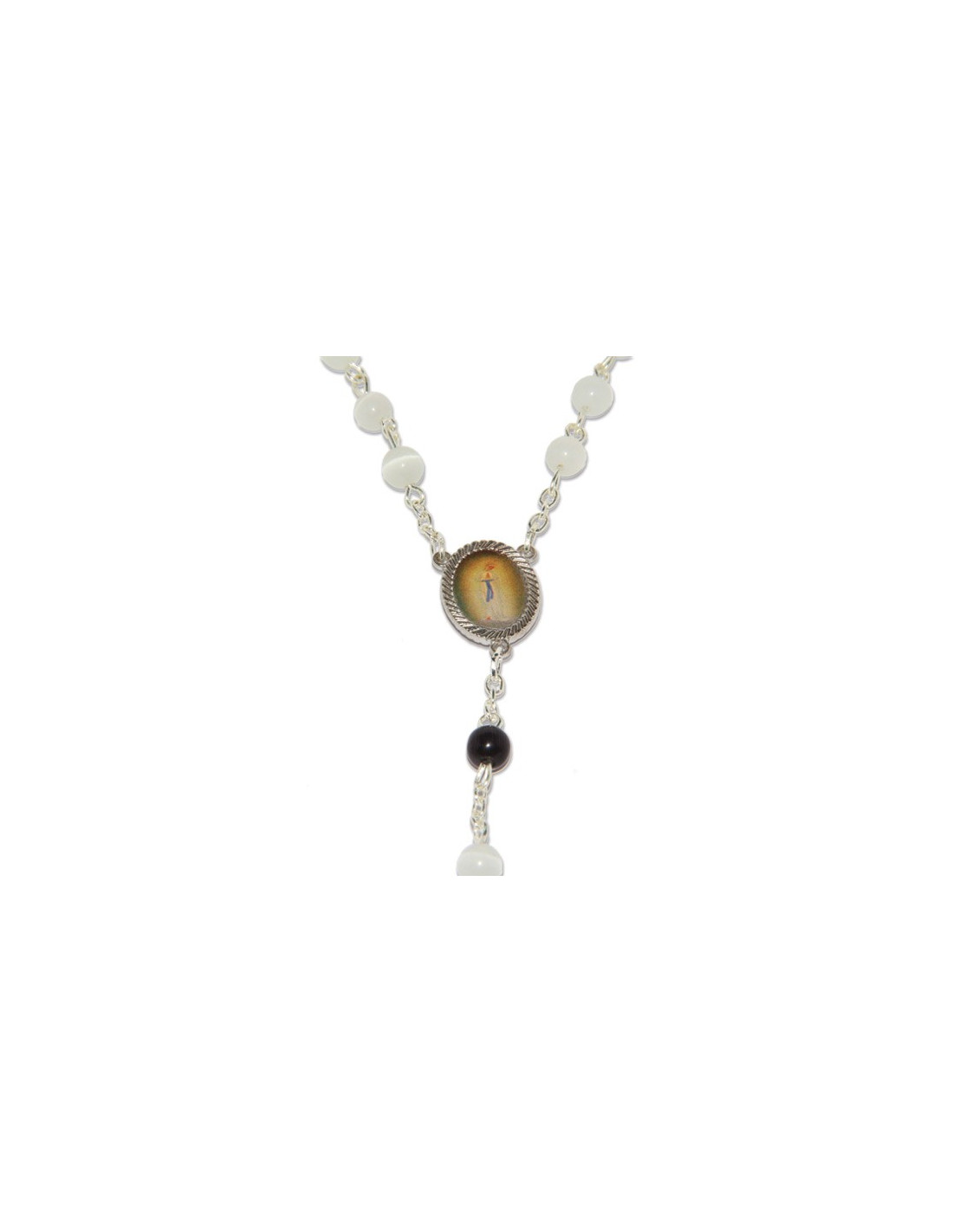 Banneux religiöser Rosenkranz Katzenauge weiß und schwarz