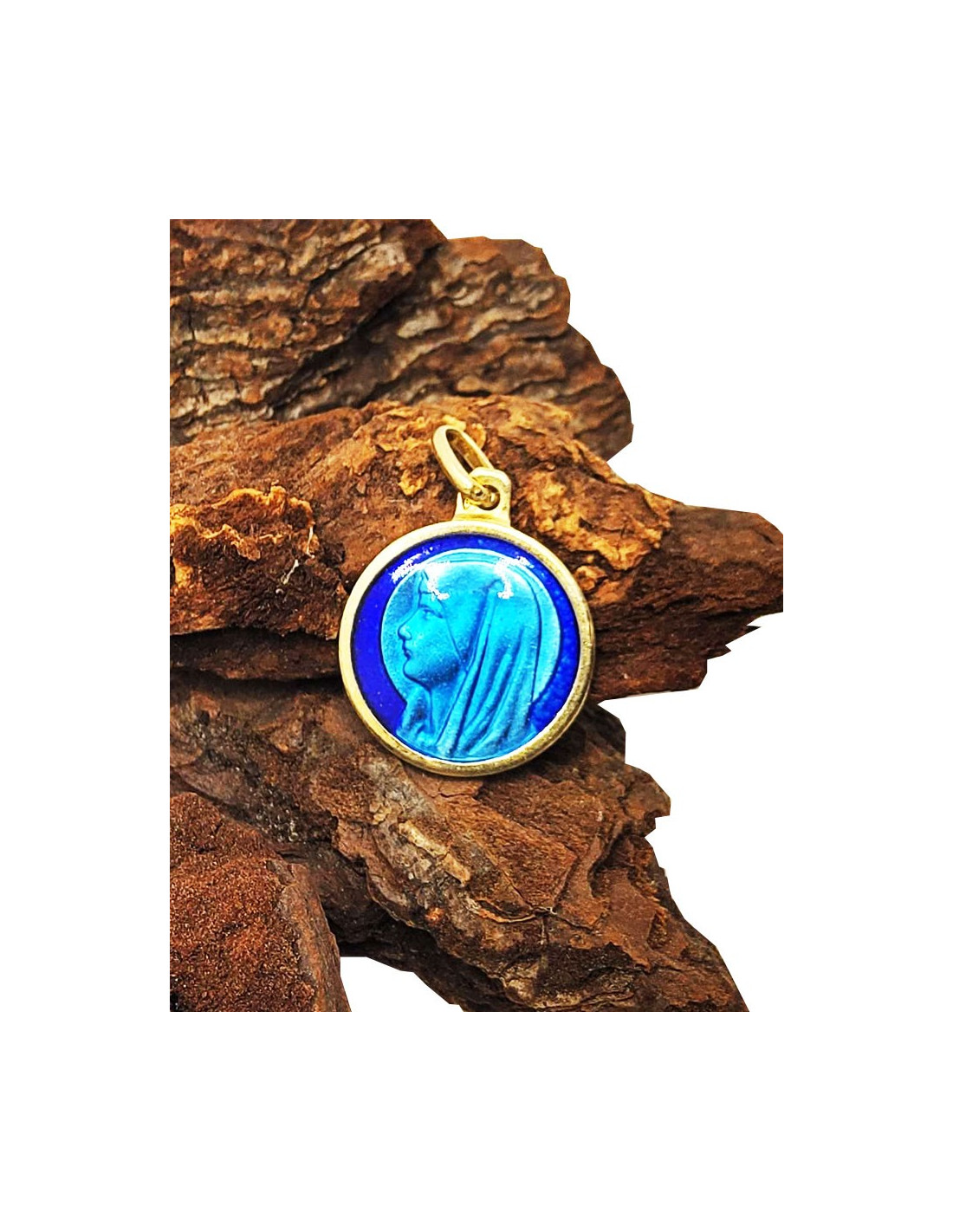 Mit Sorgfalt und Feingefühl gefertigt, erinnert jedes Detail dieser Medaille an die Zärtlichkeit und Güte der Jungfrau Maria. Die zarten Reliefs, subtil mit blauem Emaille hervorgehoben, erinnern an die liebevolle Gegenwart der Heiligen Jungfrau im täglichen Leben. Mit ihren bescheidenen Abmessungen ist diese Medaille eher diskret.