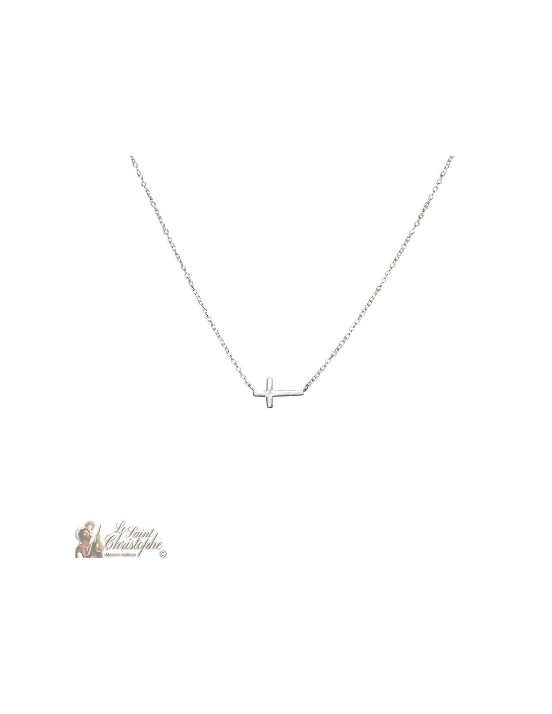 Feinmaschiges Halsband, mit 925er versilbertem Finish und E-Coat, mit einem schönen horizontalen Kreuz als Anhänger. Ein diskretes und verführerisches Accessoire für eine schicke Wirkung auf jedem Hals.