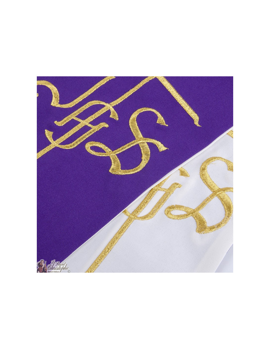 Zweifarbige Diakonenstola mit goldener JHS-Stickerei – Wende-Design in Violett und Weiß