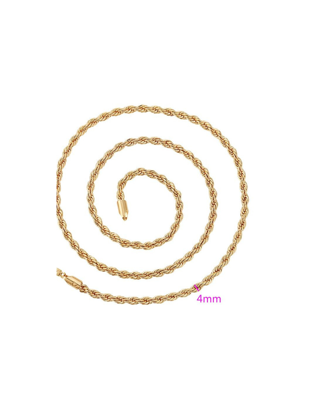 Kette für Halskette aus 18k Gold mit rundem Verschluss. Die Kette hat verflochtene Glieder, die wie ein Kabel oder ein Seil geformt sind.