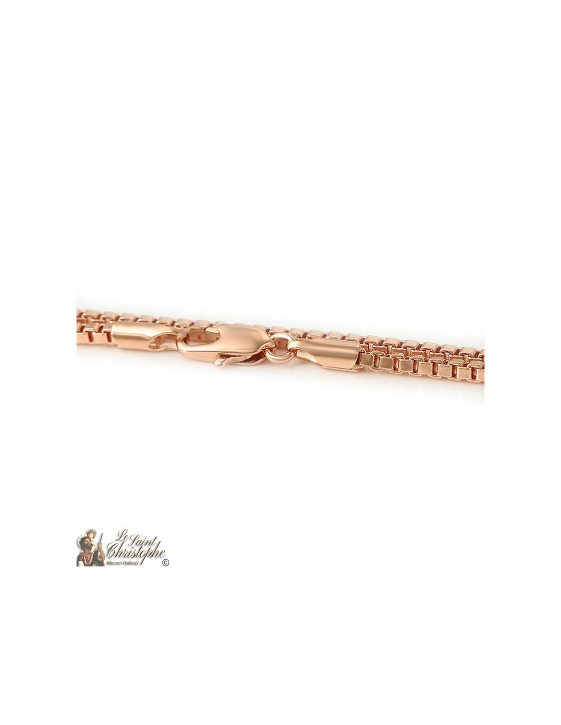Roségold plattierte Venezianer-Kette mit dicken quadratischen Gliedern für einen modernen Stil. Die Glieder sind massiv. Achten Sie auf die Breite, wenn Sie eine Medaille oder einen Anhänger anbringen möchten.