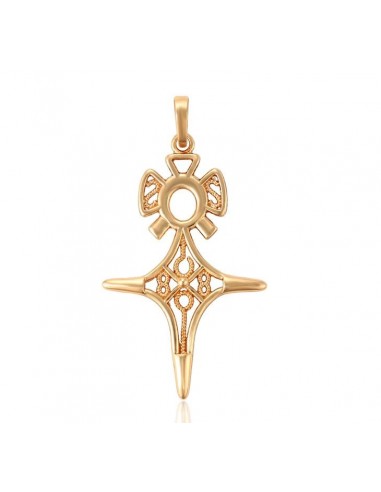 Dieser vergoldete Anhänger ist ein zartes Juwel, das Eleganz und Astronomie vereint. Perfekt für jemanden, der seinen Kopf in den Sternen hat! Dieses Kreuz ist an seiner typischen Form mit kreisförmigem Kopf zu erkennen, da es am Himmel das Sternbild des Kreuz des Südens erkennen lässt. Der Anhänger ist fein geschnitzt, mit raffinierten Details.