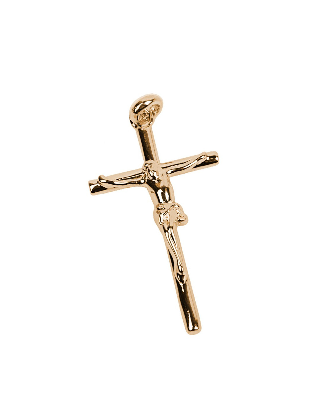 Dieser raffinierte Anhänger stellt das Kreuz des gekreuzigten Christus dar, ein heiliges Symbol des christlichen Glaubens. Er ist aus 18 Karat vergoldetem Metall gefertigt und verbindet auf elegante Weise Spiritualität und zeitlose Ästhetik. Sein fein gearbeitetes Design hebt die Details des gekreuzigten Christus hervor und behält gleichzeitig schlichte und klare Linien bei, die ihn zu einem diskreten und zugleich zutiefst symbolischen Schmuckstück machen.