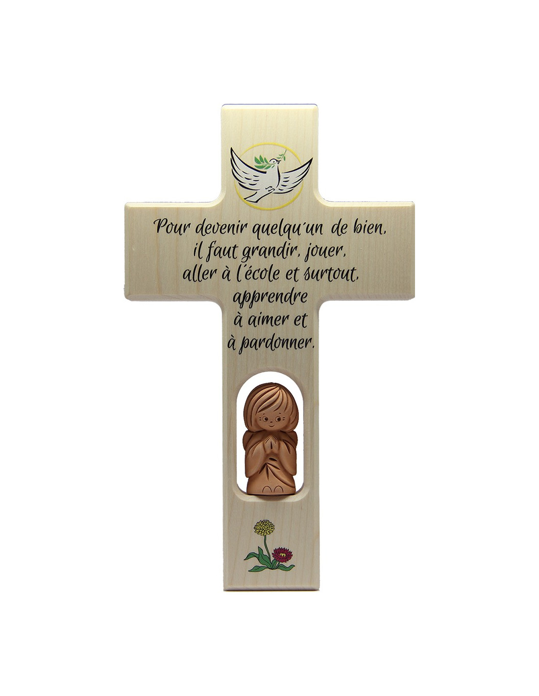 Die Kombination aus natürlichem Holz und Terrakotta verleiht diesem Kreuz eine warme und authentische Ausstrahlung, ideal für ein Kinderzimmer, eine Gebetsecke oder einen Ort der Besinnung.