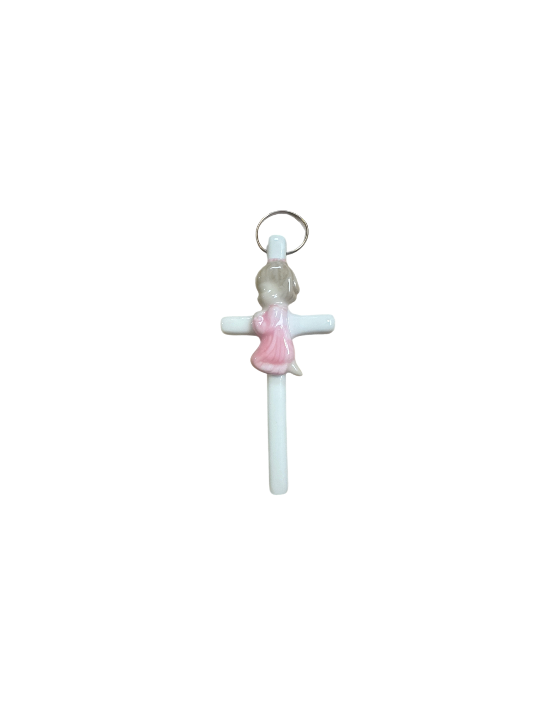 Religiöses Kreuz betendes Mädchen 7 x 15 cm – Weiße Keramik