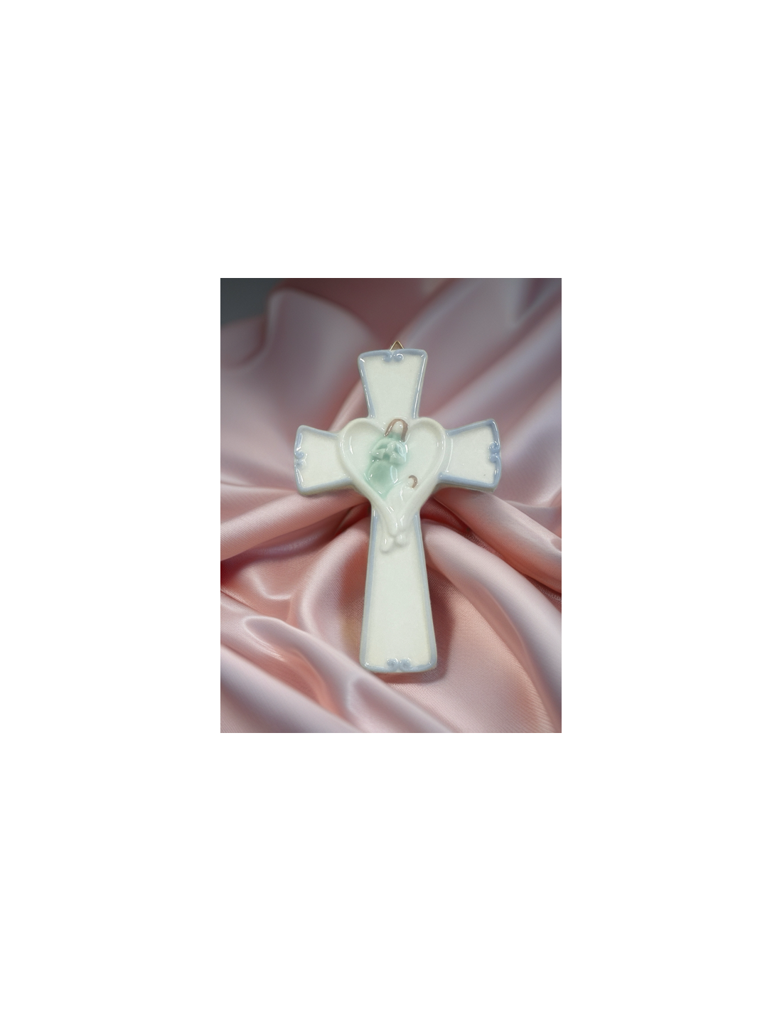Wandkreuz aus weißer und blauer Keramik – Eleganter Schutzengel