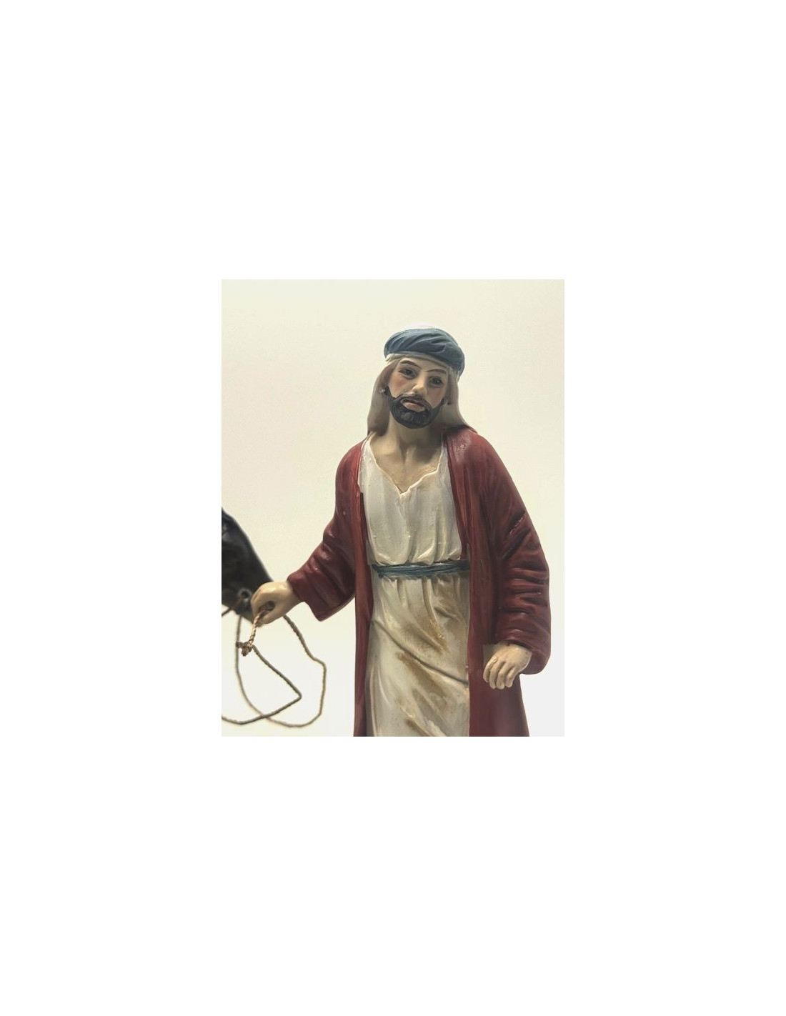 Diese Figur aus hochwertigem Harz zeigt Maria, schwanger und auf einem Esel sitzend, geführt von Josef. Ein ausdrucksstarkes und fein gearbeitetes Kunstwerk, das die spirituelle Tiefe dieses besonderen Moments einfängt.