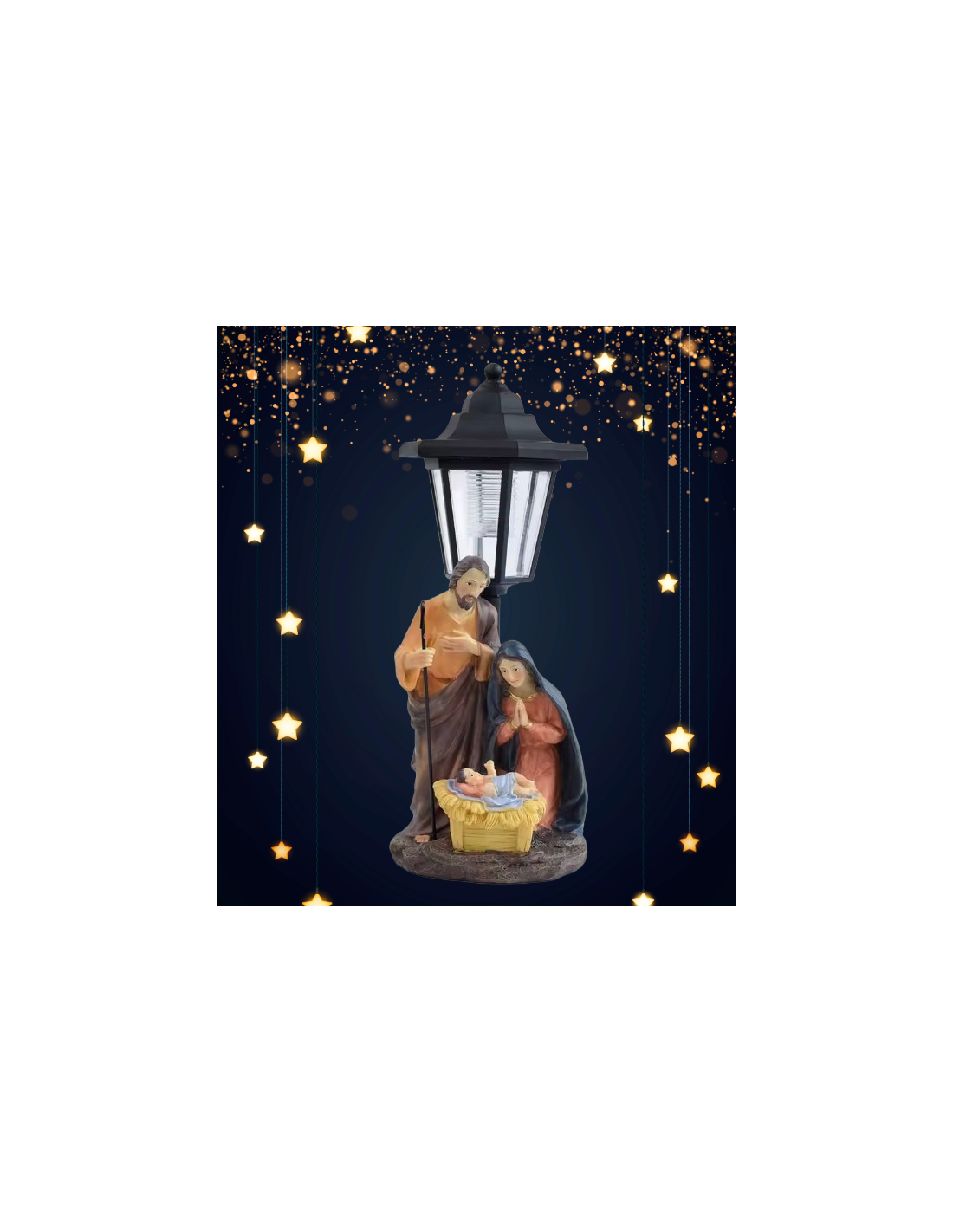 Heilige Familie Statue aus Harz mit Solarlicht