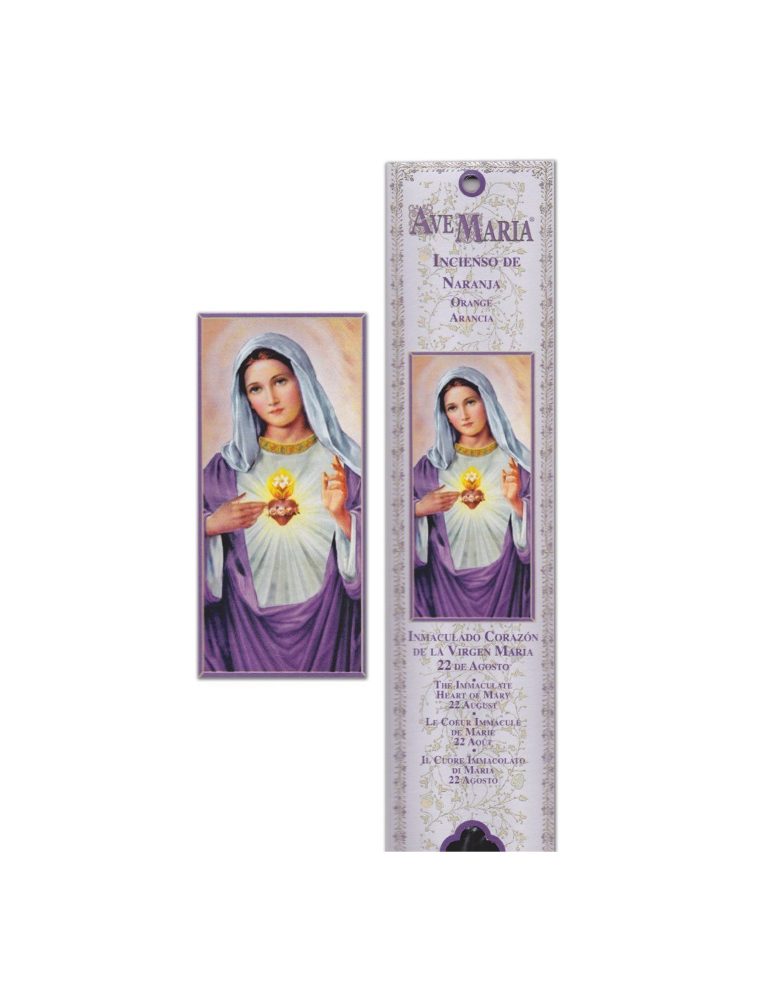 Dieser Beutel mit dem Bild des Heiligsten Herzens Mariens in leuchtenden Farben enthält 15 natürliche Räucherstäbchen mit dem belebenden Duft der Orange. Es wird hauptsächlich am 22. August gebetet. Diese belebende Räucherung wird insbesondere verwendet, um die Kommunikation und das Einfühlungsvermögen zu öffnen und die bedingungslose Liebe zu fördern.