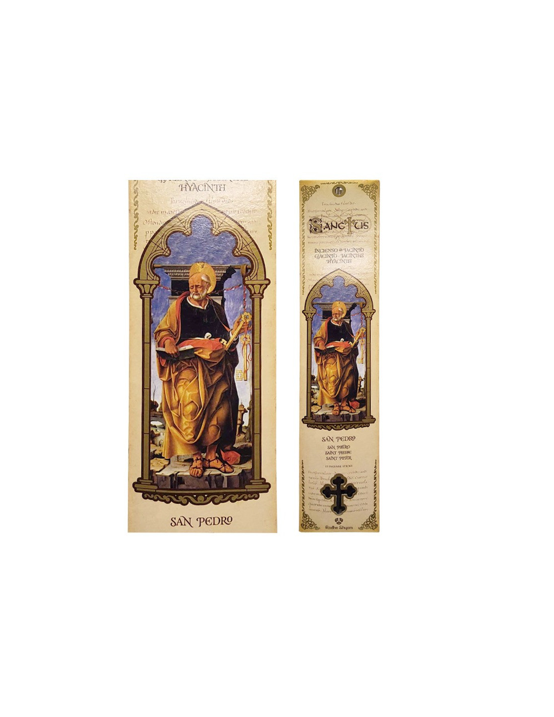 Dieser Beutel mit dem Bild des Heiligen Petrus, dem ersten Apostel Jesu und Hüter der Tore des Paradieses, mit wunderschöner Illustration in satten Farben, enthält 15 natürliche Räucherstäbchen mit Hyazinthenduft. Der heilige Petrus ist der Schutzpatron der reuigen Sünder, des Handels und der Geschäftsleute sowie der Ehen. Dieser Weihrauch, eine hervorragende Kombination aus dem Parfüm und dem gewählten Heiligen, wird für Gebet, Selbstbeobachtung und Vergebung, für Handel und Beredsamkeit sowie für eine gute Verständigung bei Paaren und Familien empfohlen. Für eine verstärkte Wirkung empfehlen wir Ihnen, dieses Räucherwerk mit der dazugehörigen Novenkerze und dem Novenbüchlein zu verwenden.