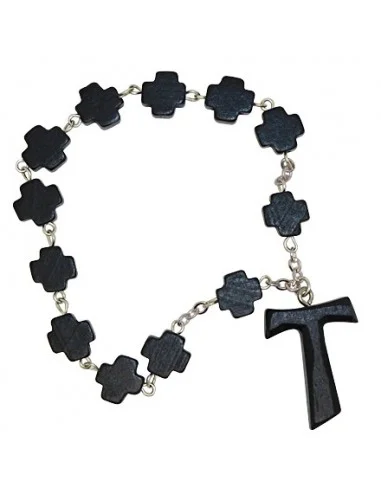Zehner-Rosenkranz mit schwarzen Holzkreuzen und TAU-Kreuz