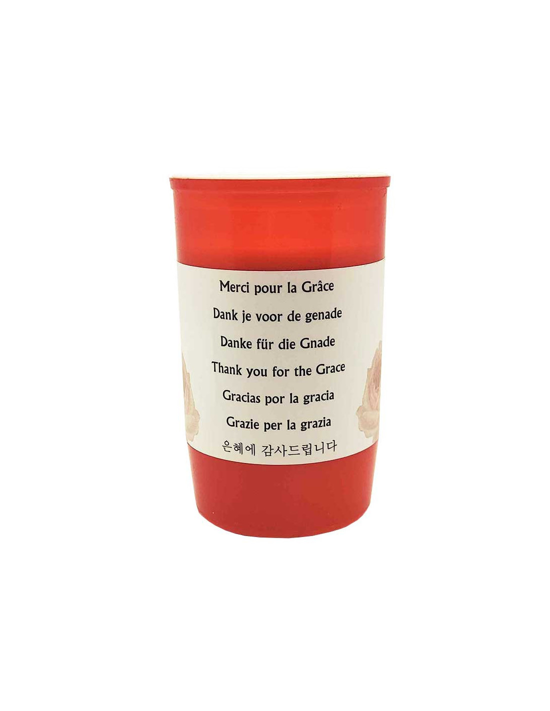 The red plastic container is durable and enhances the religious image while ensuring an even diffusion of light.
