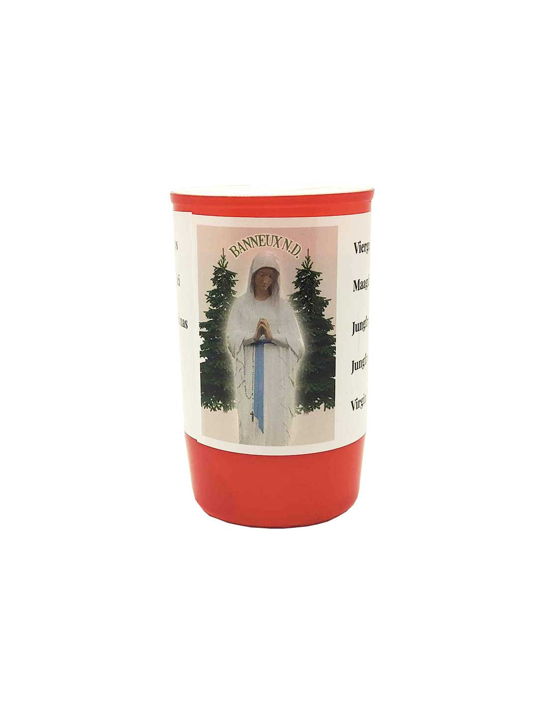 The red plastic container is durable and protects the flame while enhancing the religious image and creating a soft, soothing light.