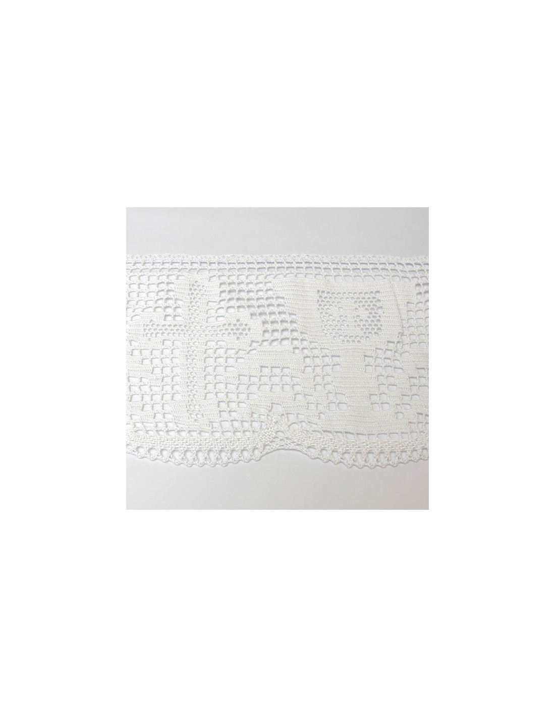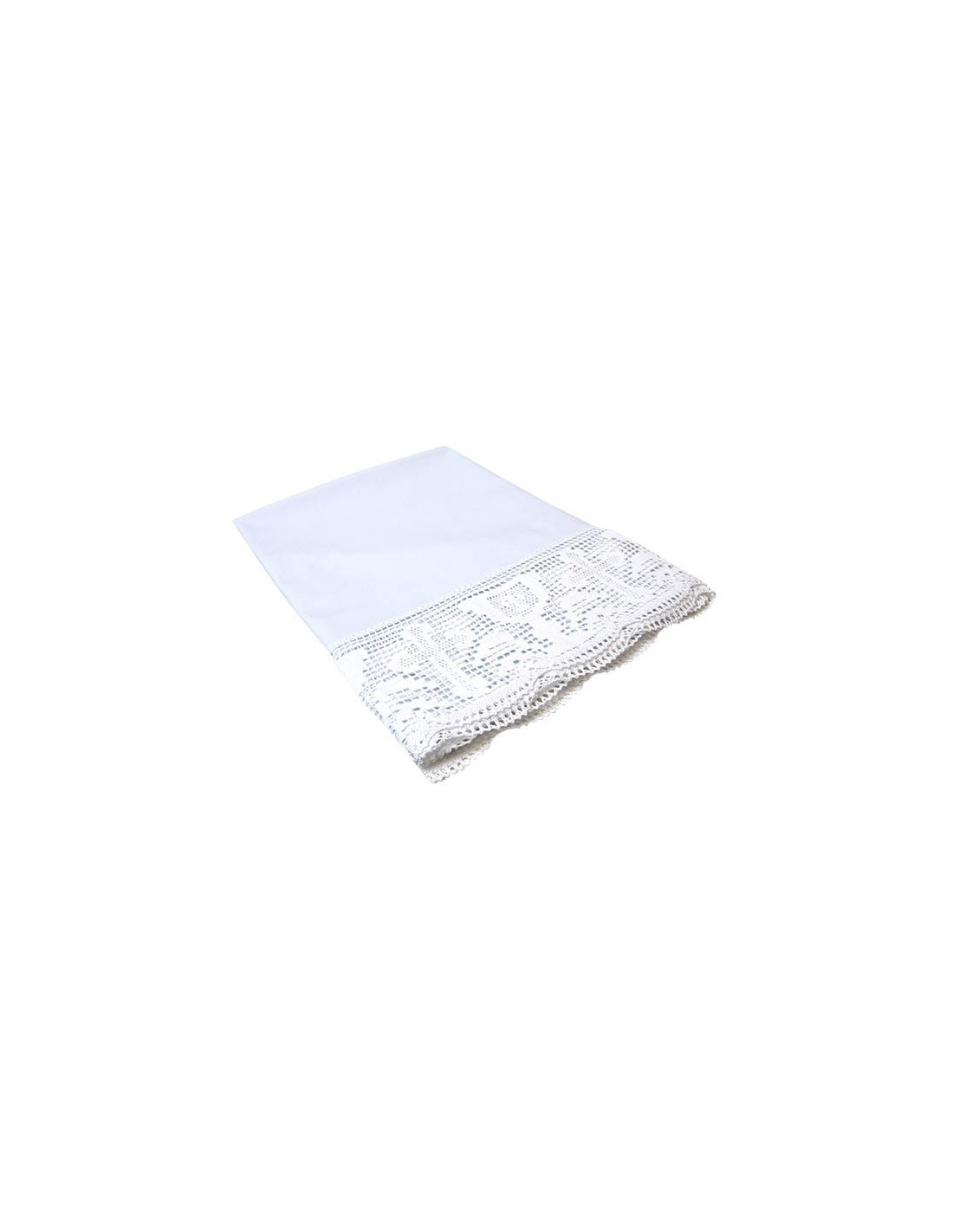 Superb altar cloth for religious services. The tablecloth is decorated with lace on three sides, depicting the Cross and Chalice, two classic motifs alternating with each other. The tablecloth and lace are entirely white. For ease of use, the fabric is machine washable.