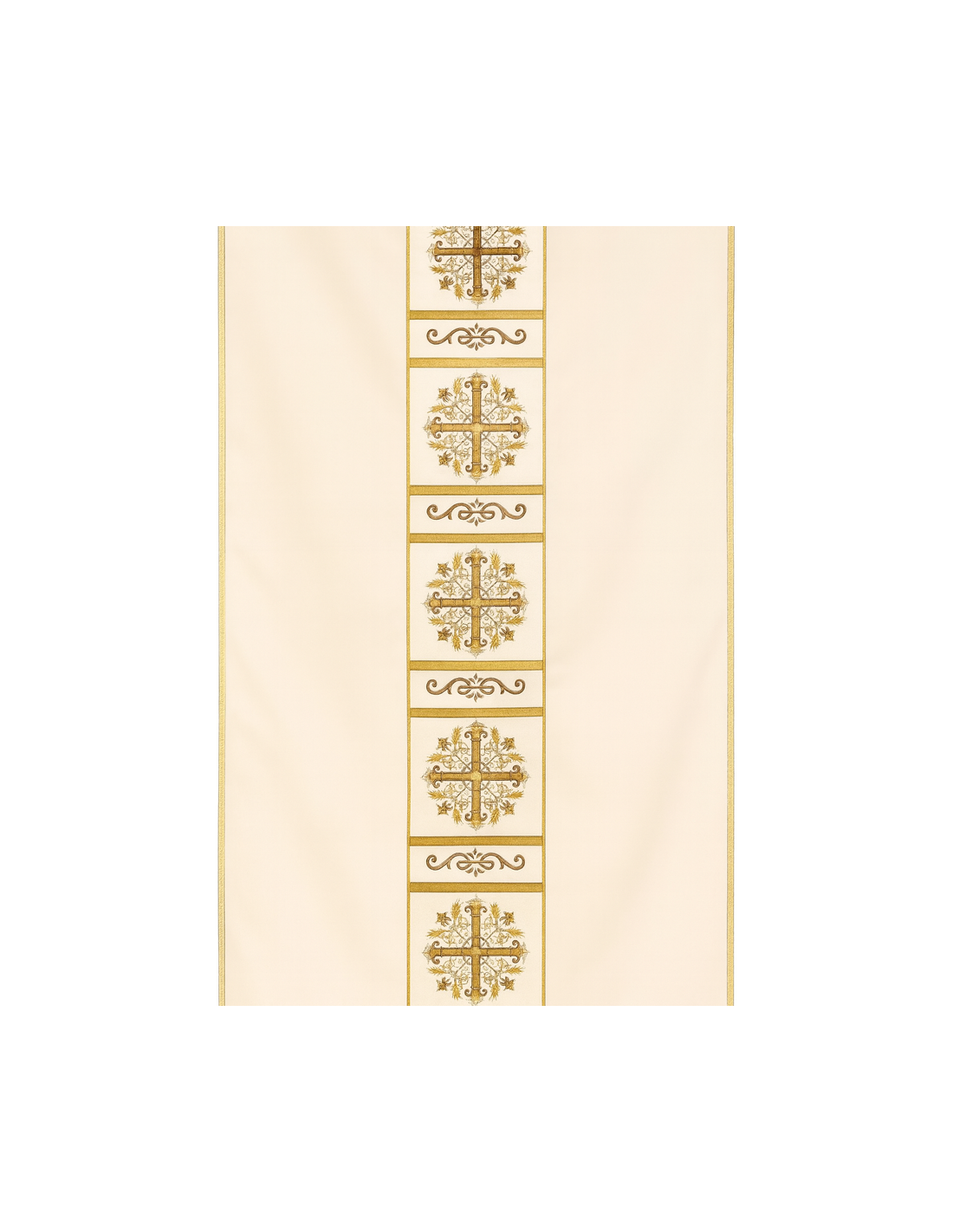 Motivos: Cruces bordadas en hilo de oro – banda vertical central